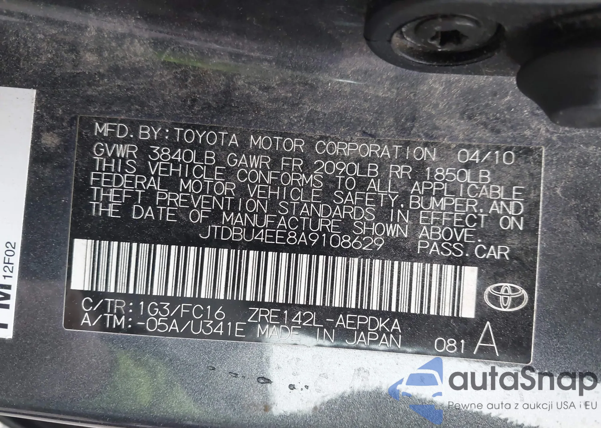 LOT: 42513726 VIN: JTDBU4EE8A9108629