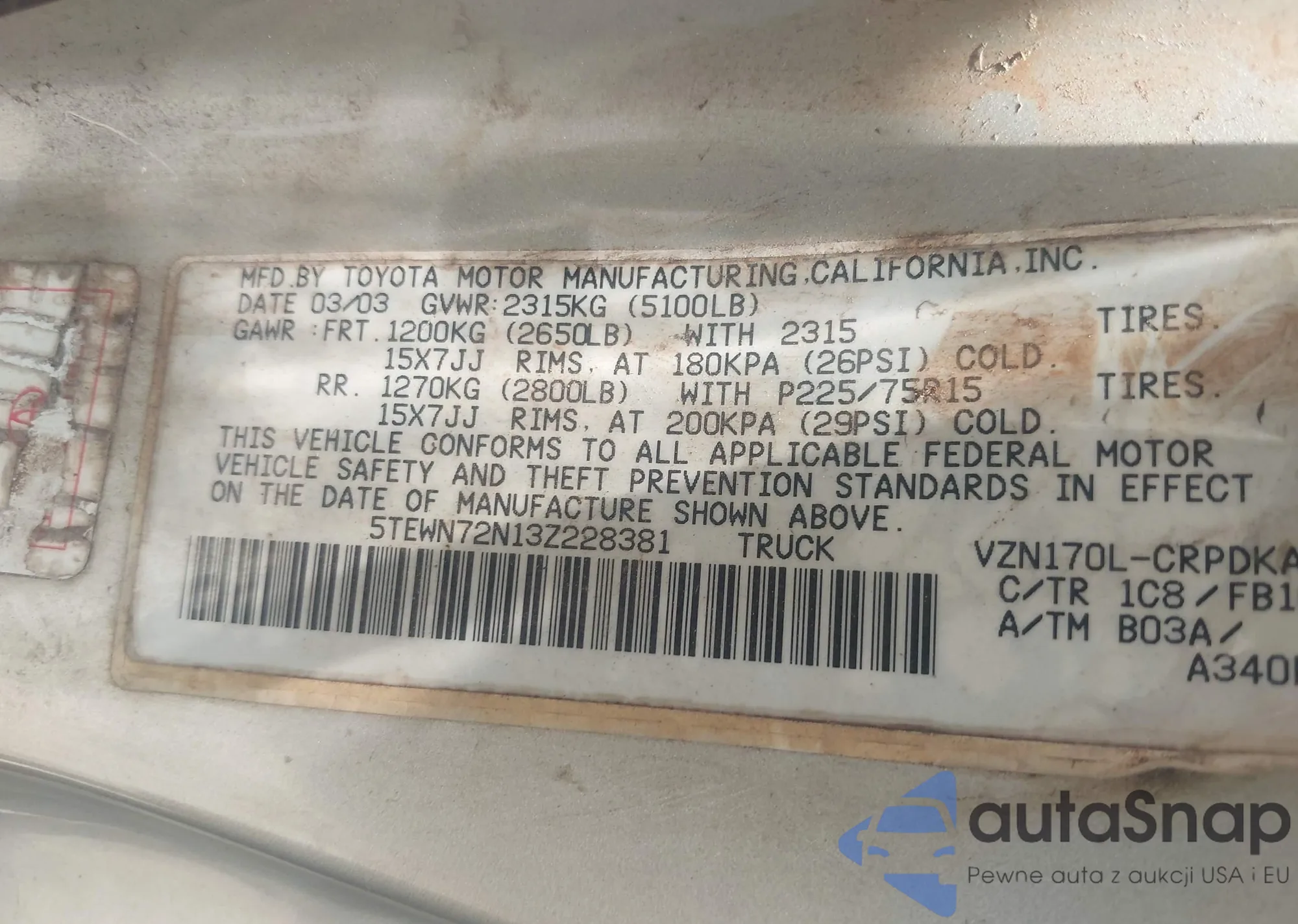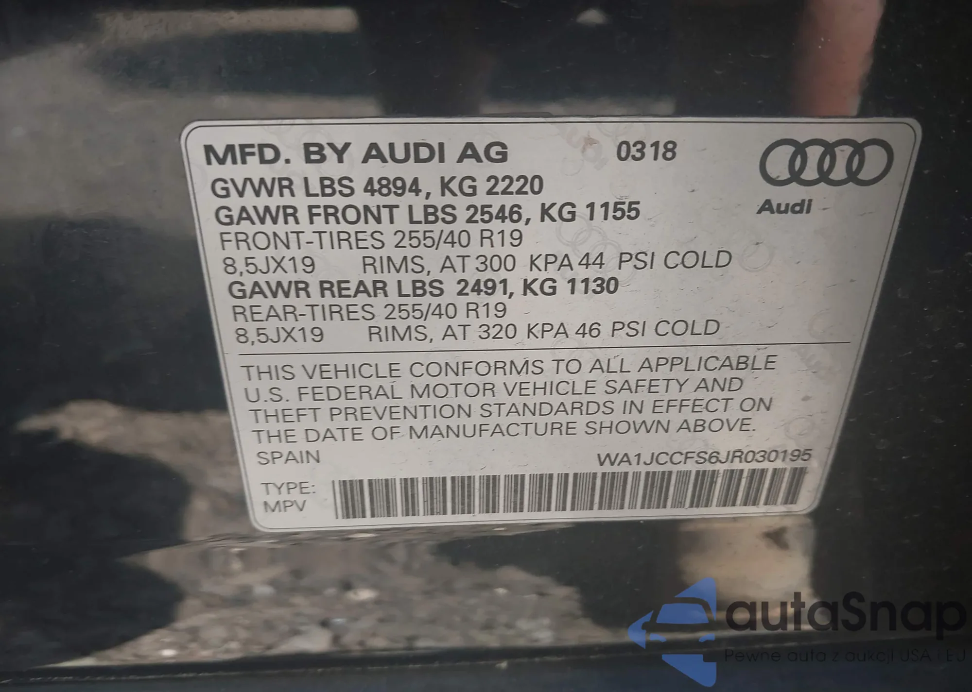 LOT: 42538645 VIN: WA1JCCFS6JR030195