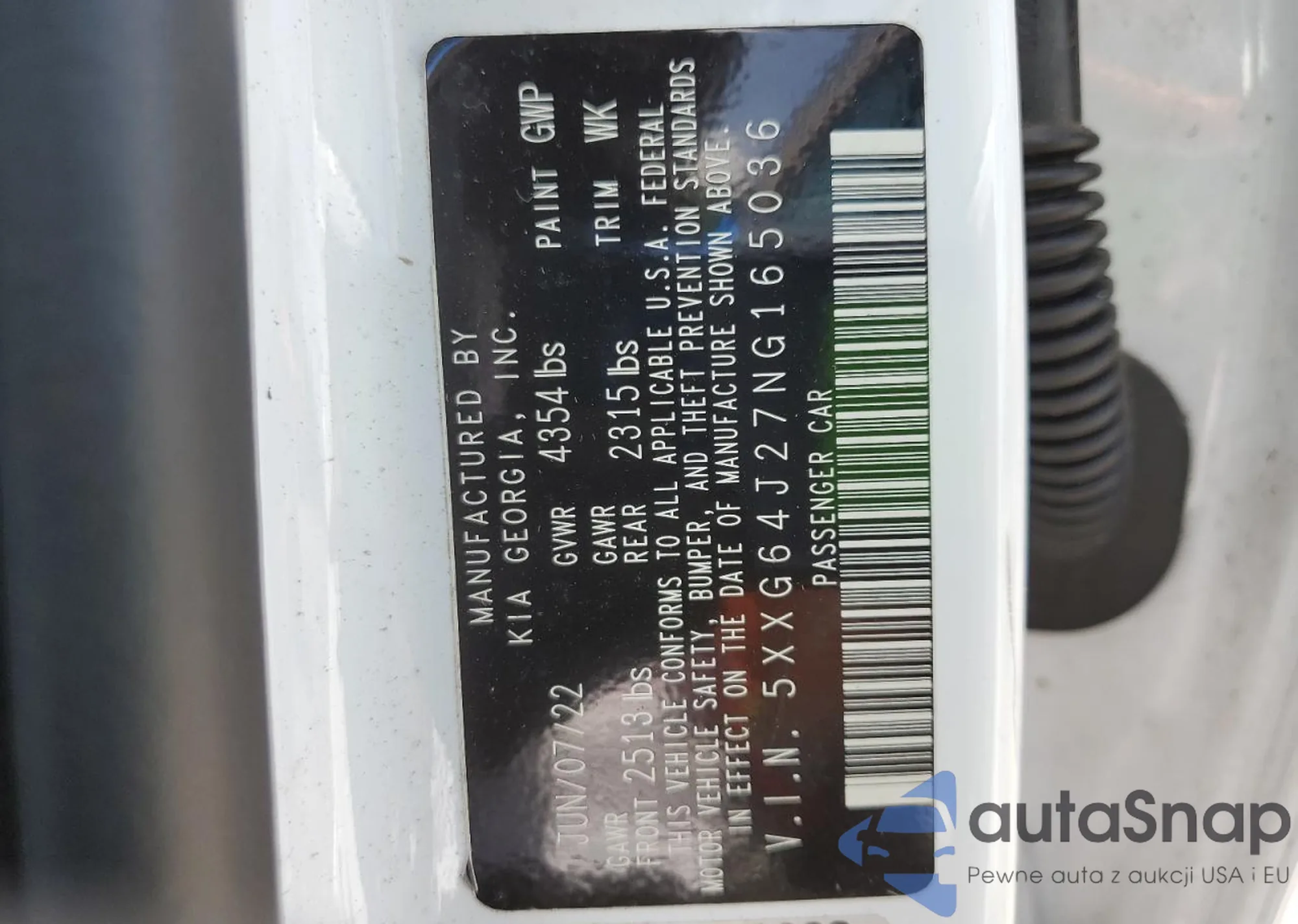 • VIN 5XXG64J27NG165036