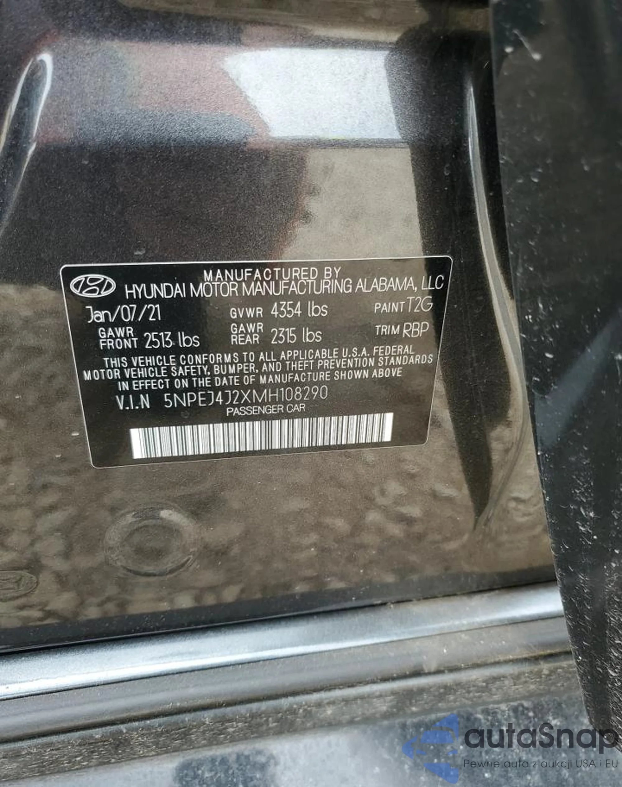 LOT: 63514265 VIN: 5NPEJ4J2XMH108290