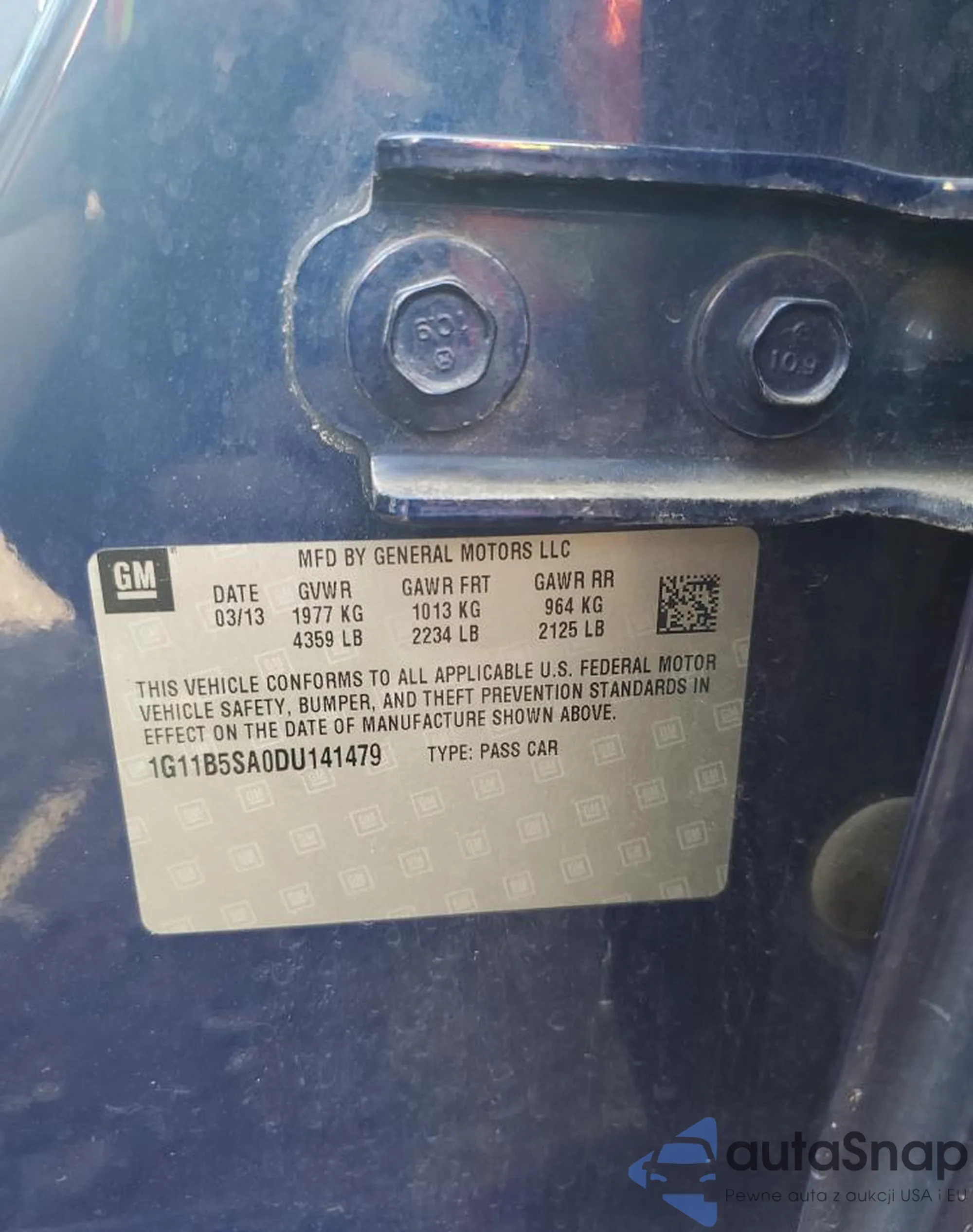 LOT: 62554375 VIN: 1G11B5SA0DU141479