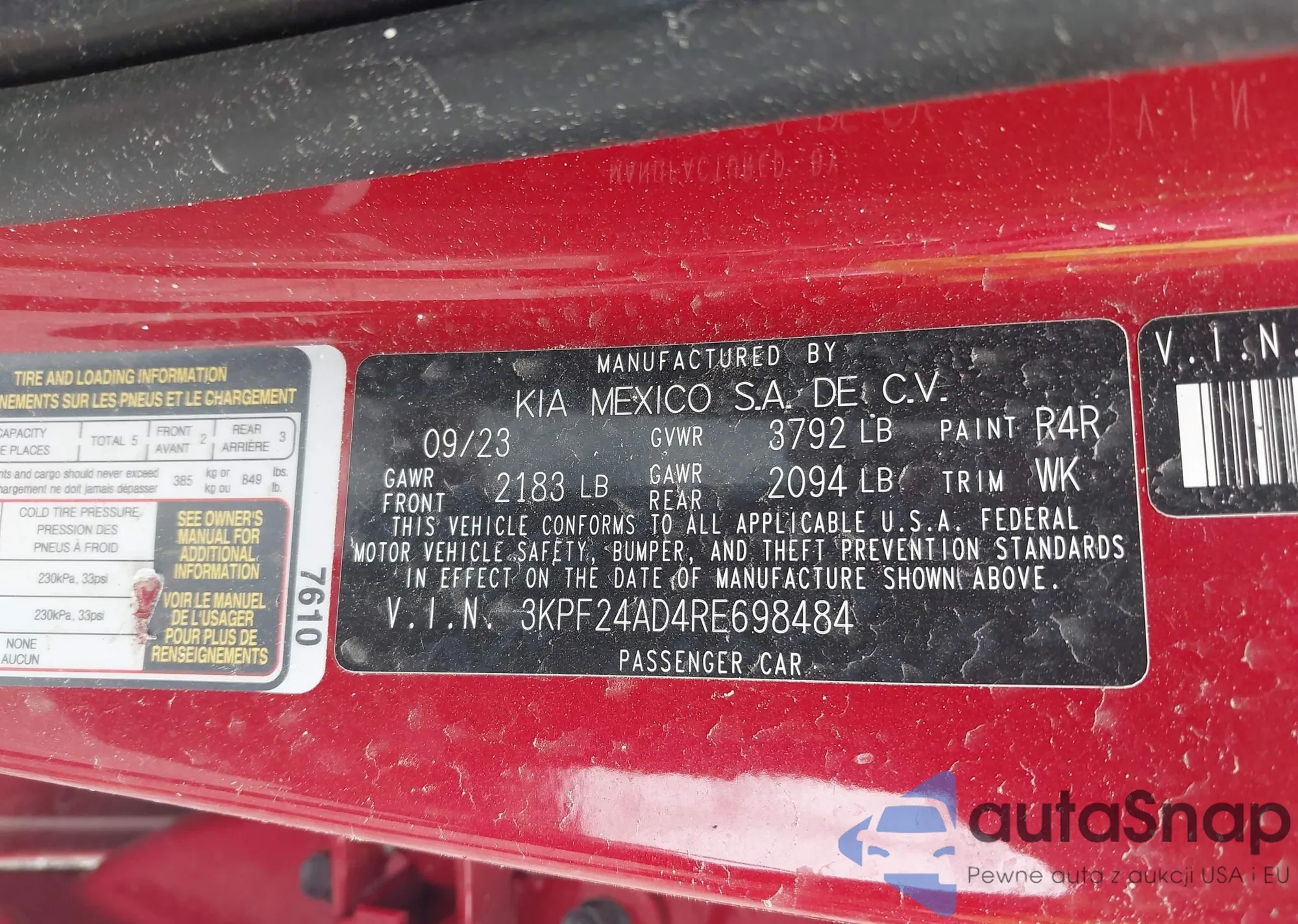 • VIN 3KPF24AD4RE698484