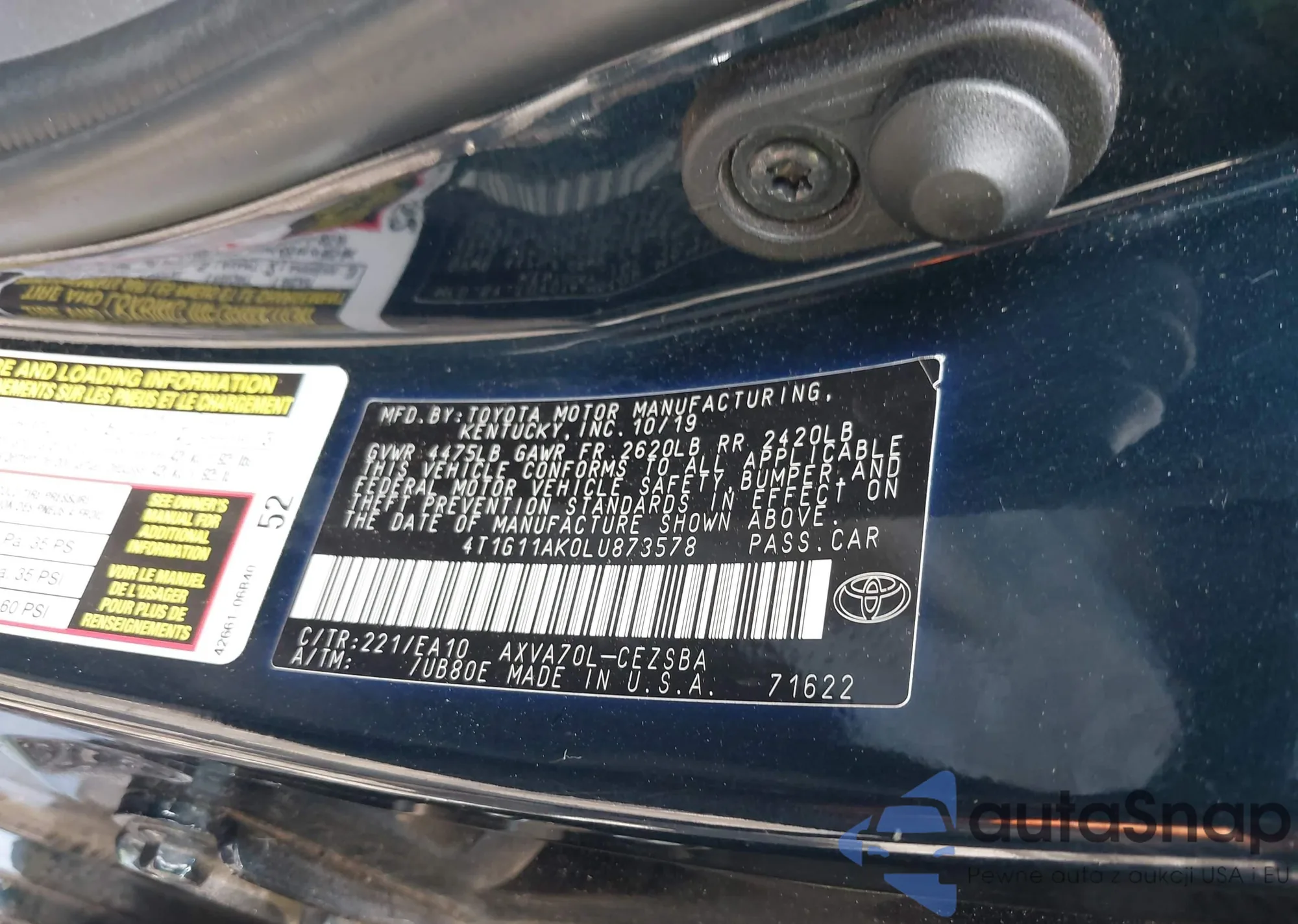 LOT: 42248278 VIN: 4T1G11AK0LU873578
