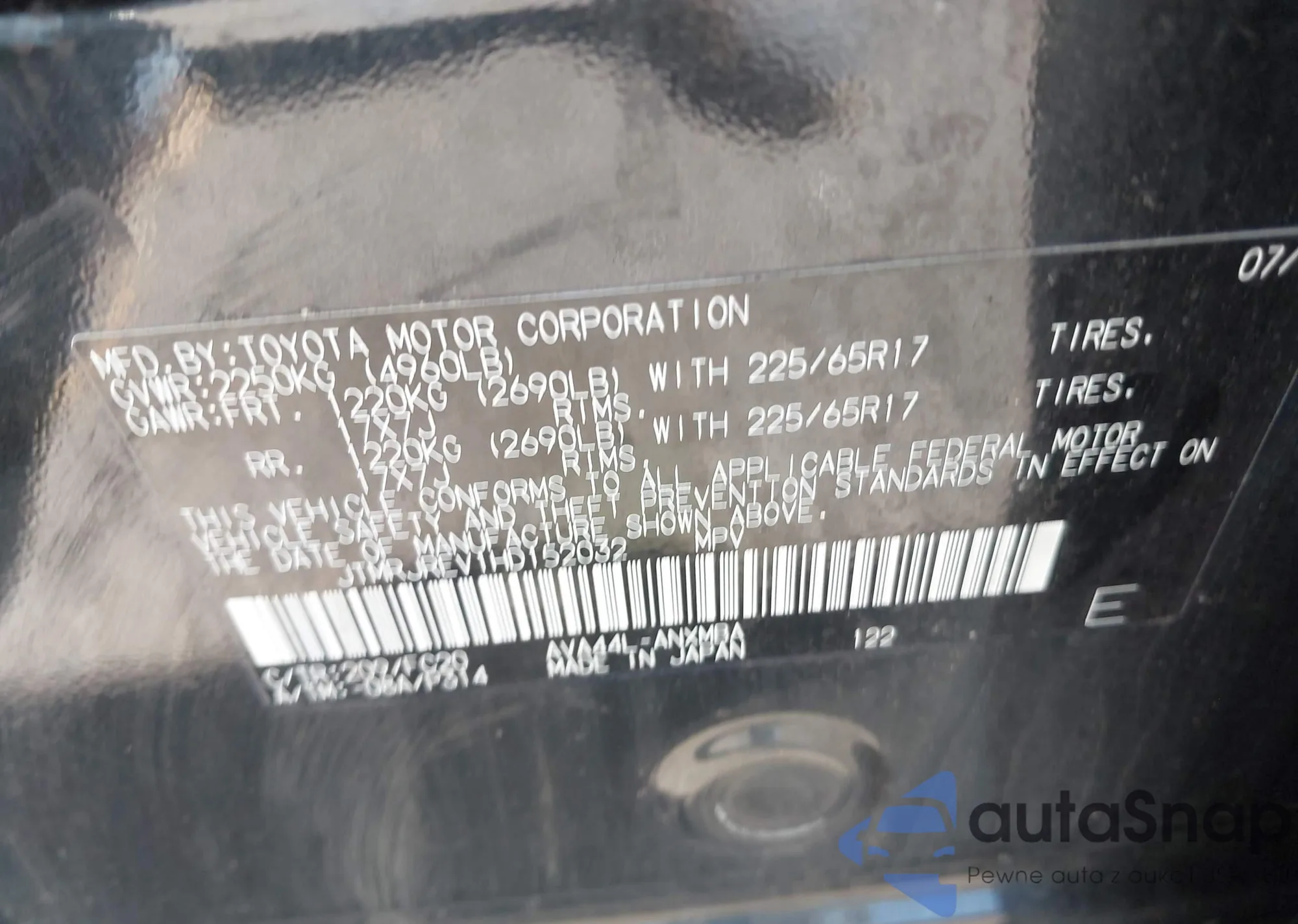 LOT: 42449329 VIN: JTMBFREV4GJ089026