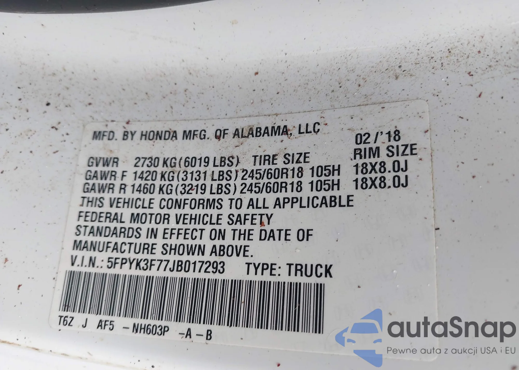 LOT: 42430093 VIN: JHMGK5H53HS024068