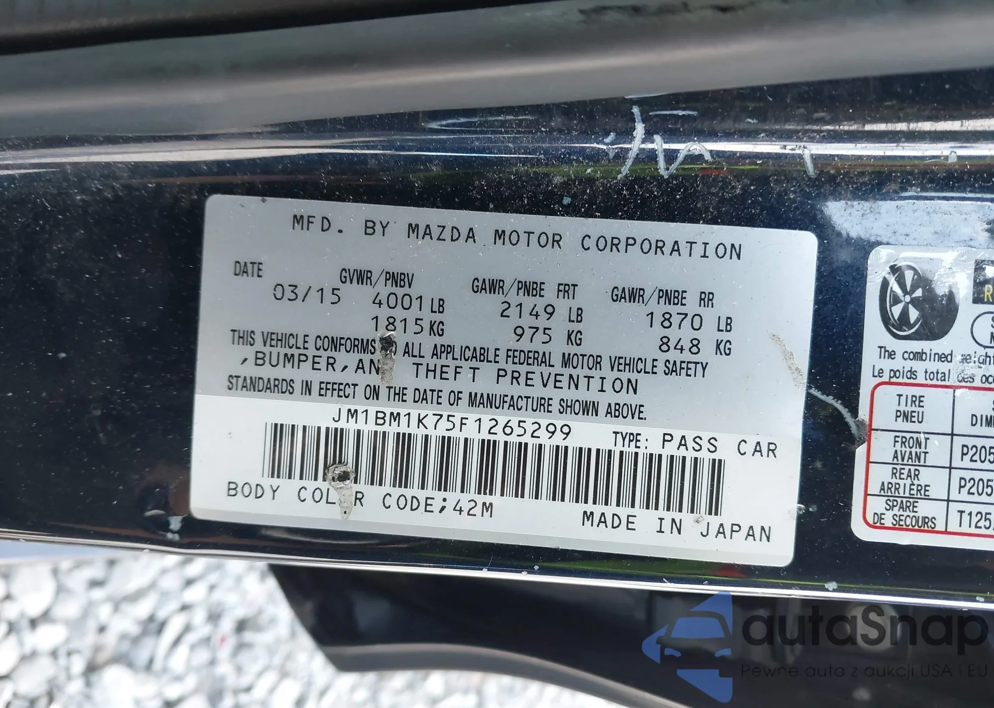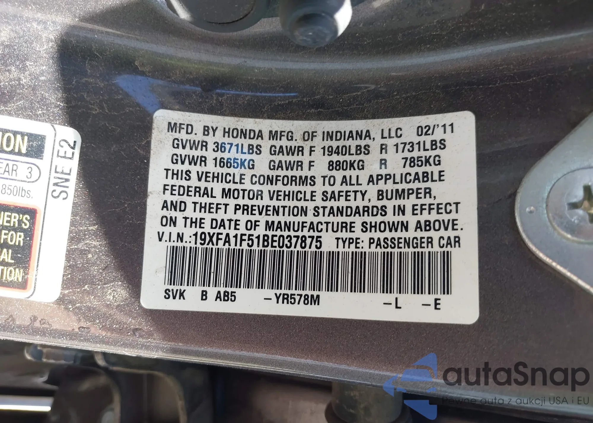 • VIN 19XFA1F51BE037875
