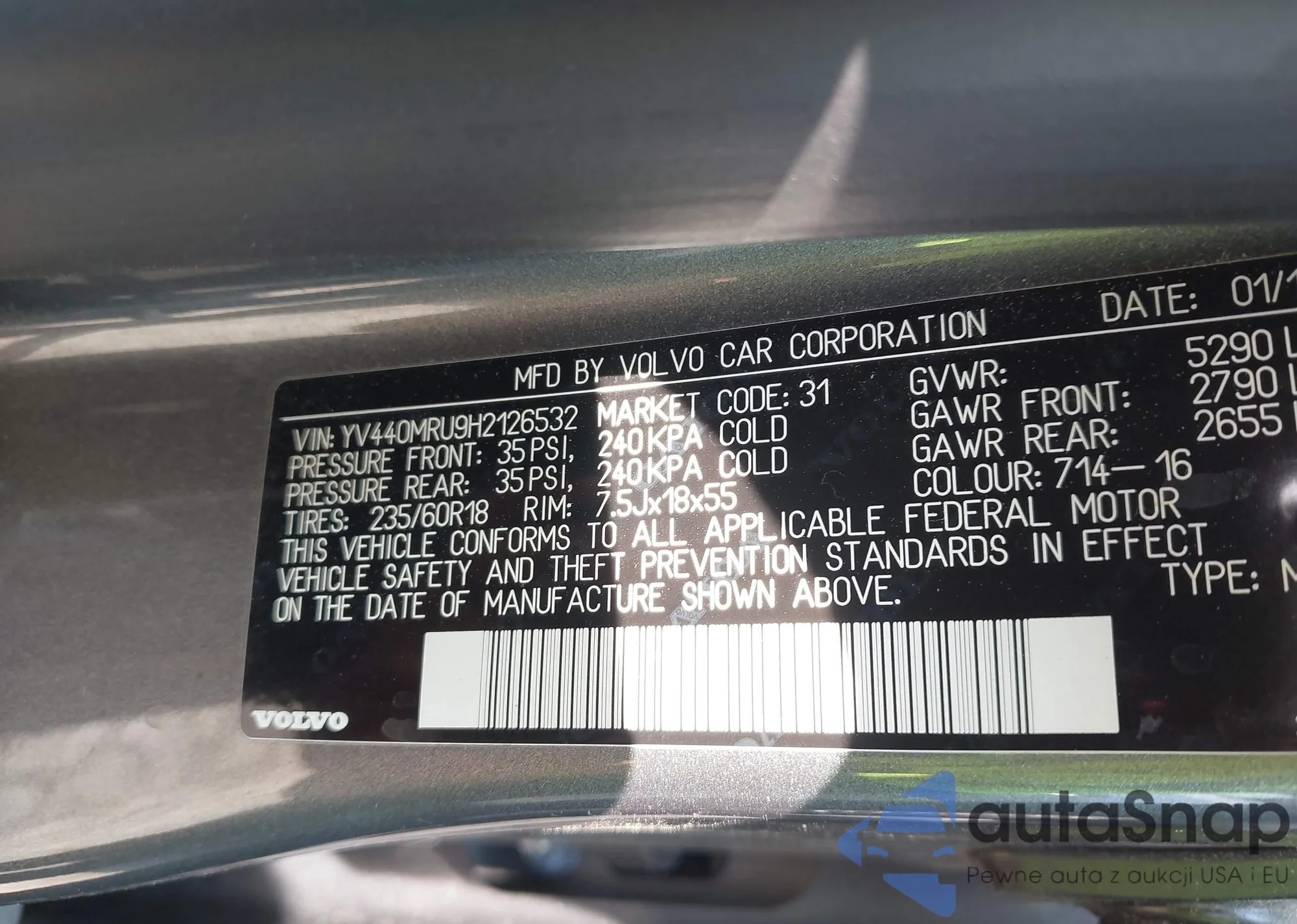 LOT: 42650041 VIN: YV440MRU9H2126532