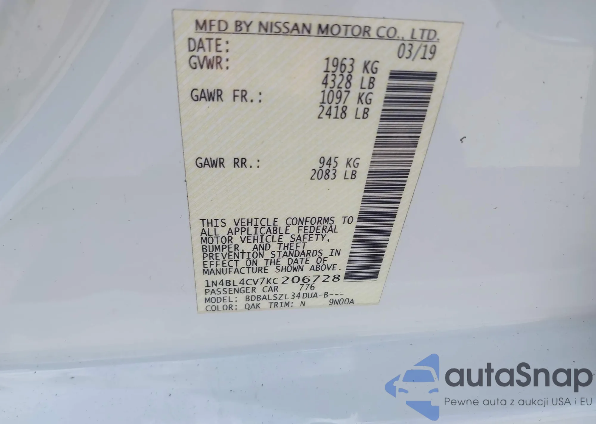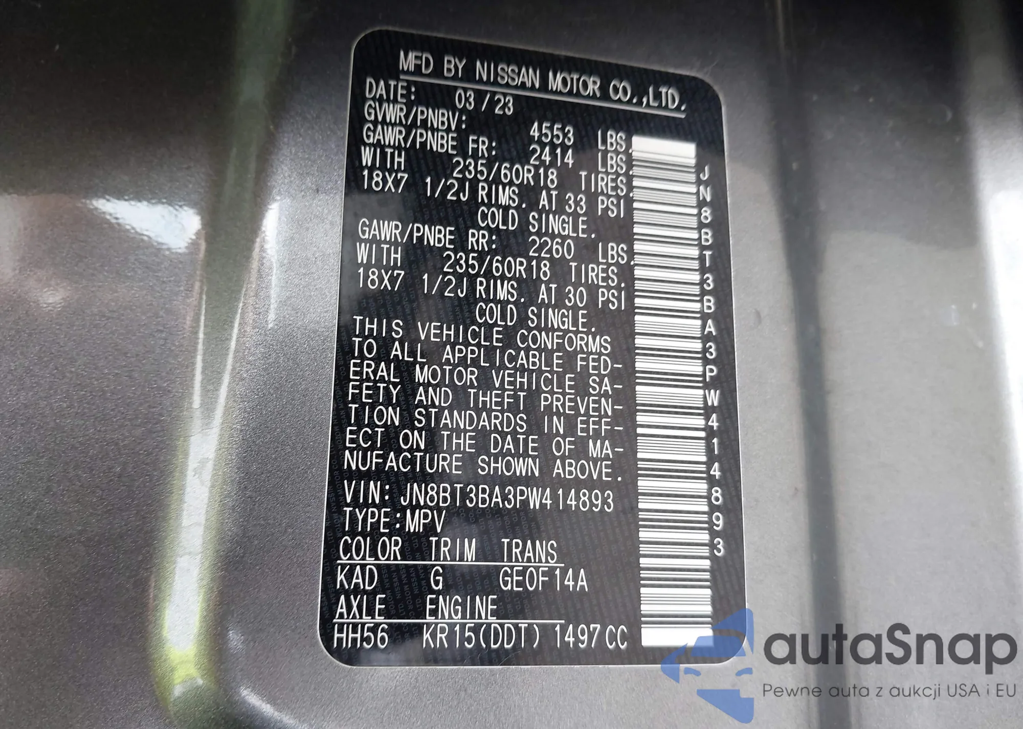 LOT: 42559012 VIN: JN8BT3BA3PW414893