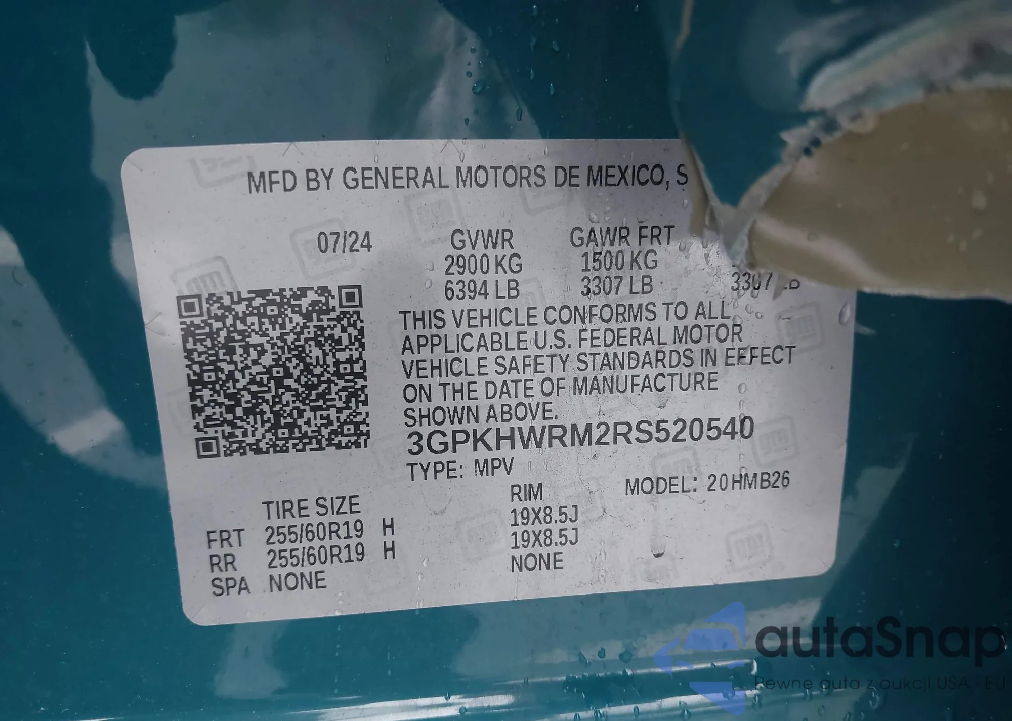 • VIN 3GPKHWRM2RS520540