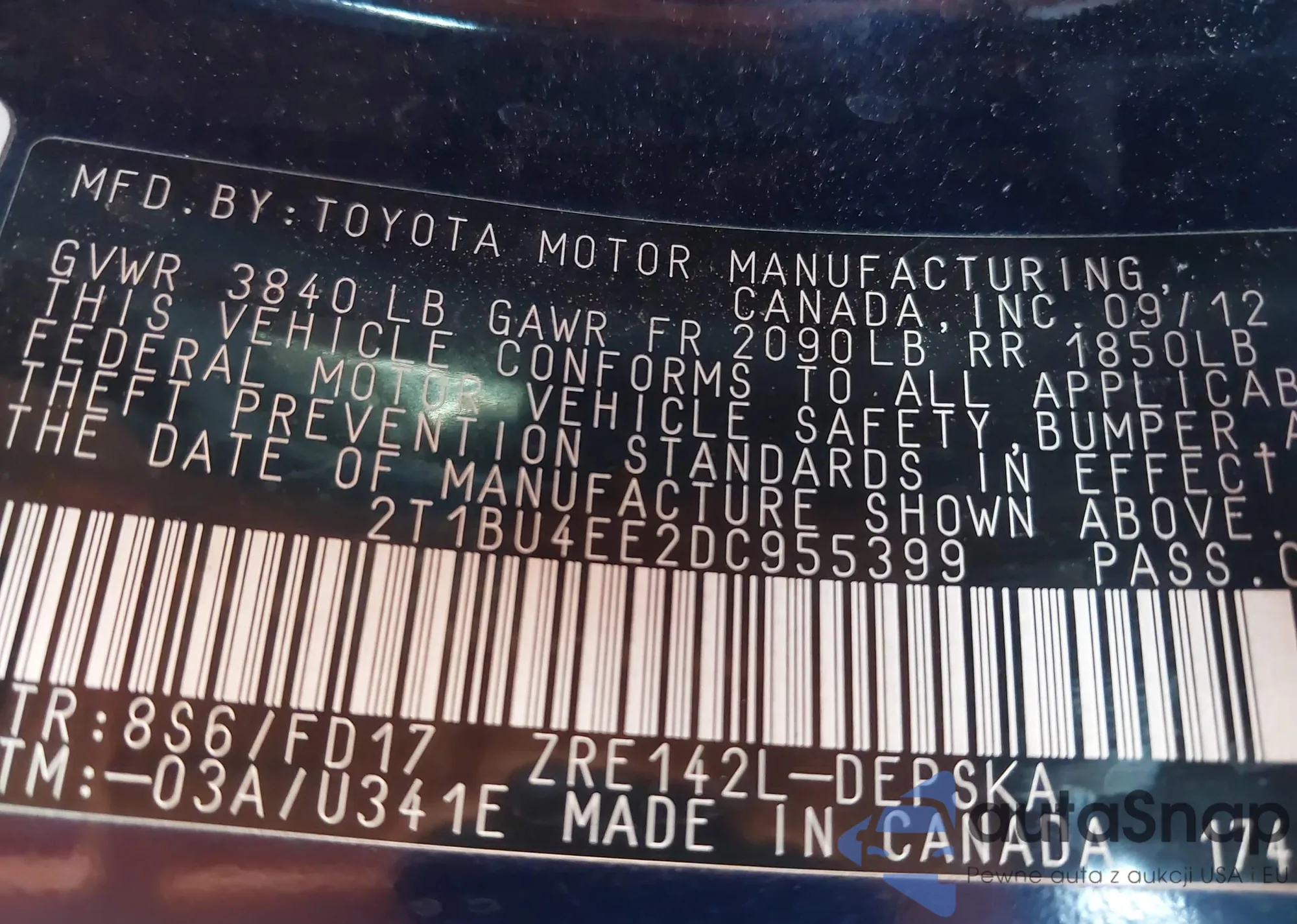LOT: 42254005 VIN: 2T1BU4EE2DC955399