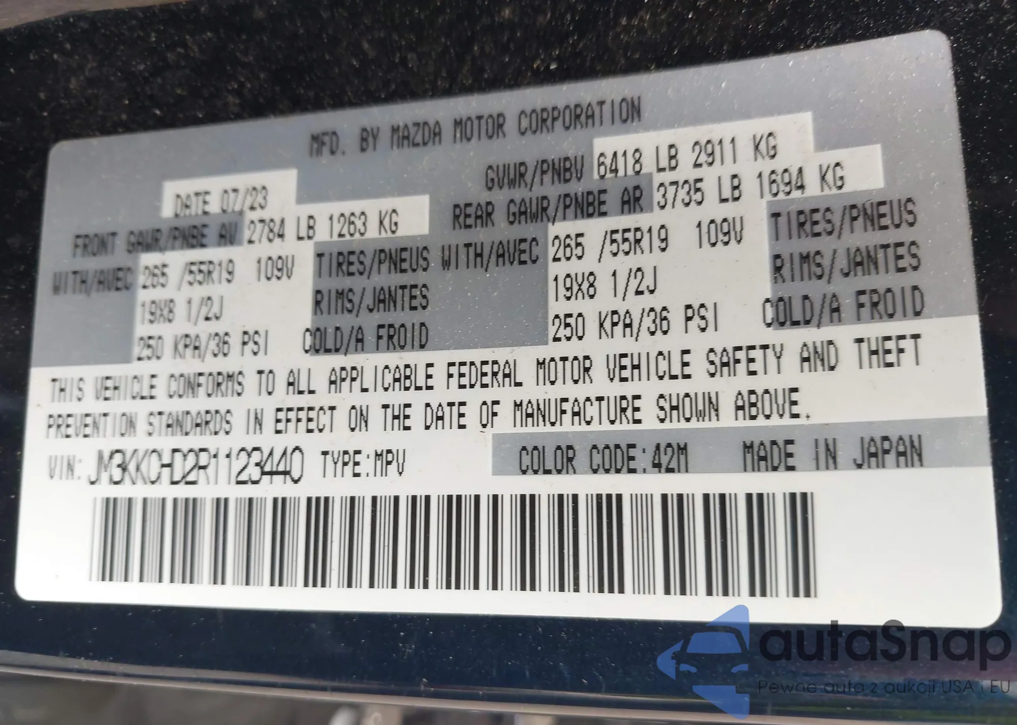 LOT: 42309756 VIN: JM3KKCHD2R1123440