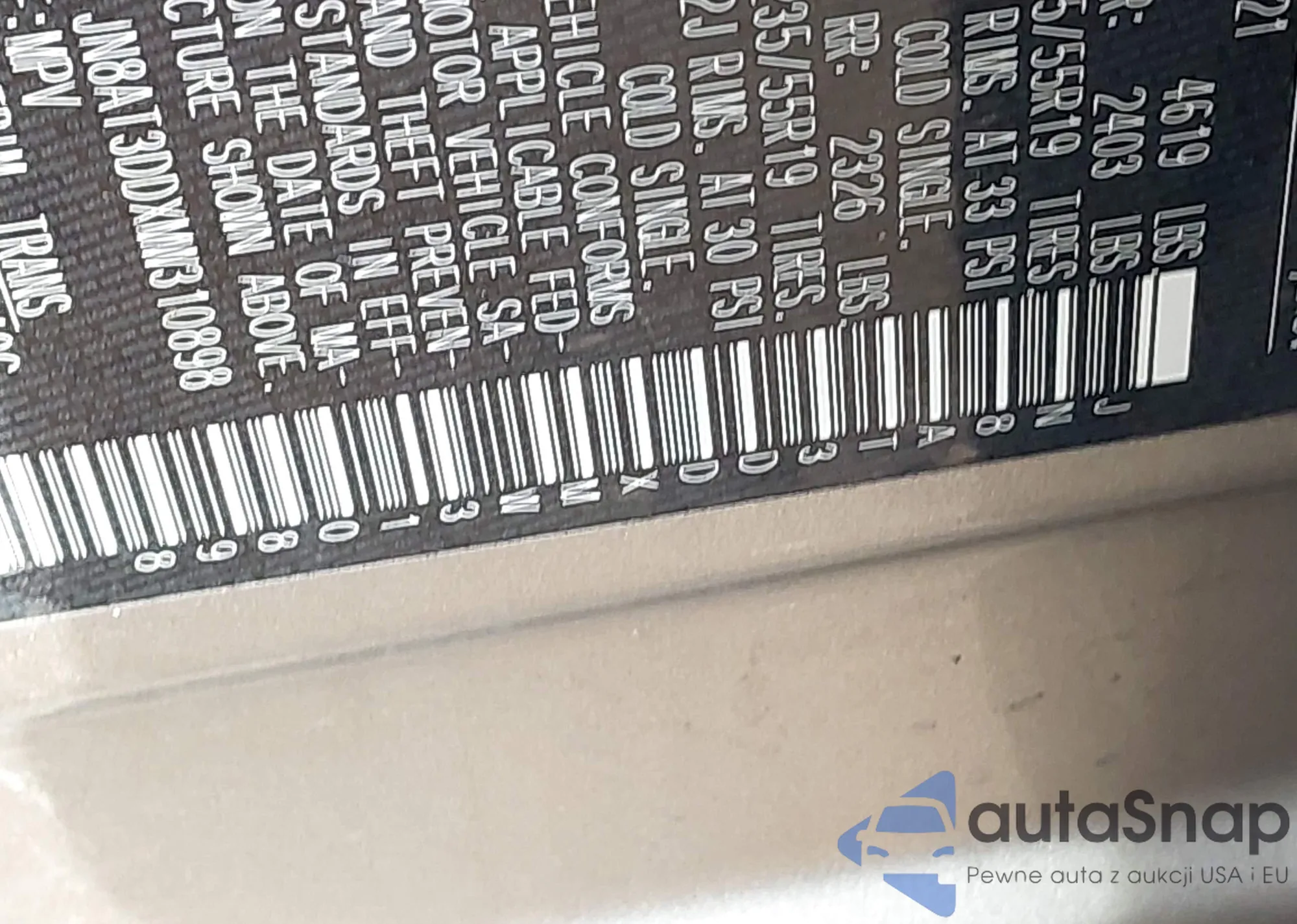 LOT: 42486745 VIN: JN8AT3DDXMW310898