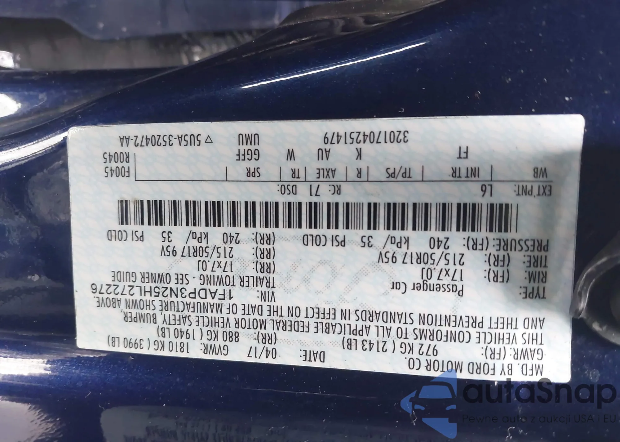 LOT: 41630327 VIN: 1FADP3N25HL272276