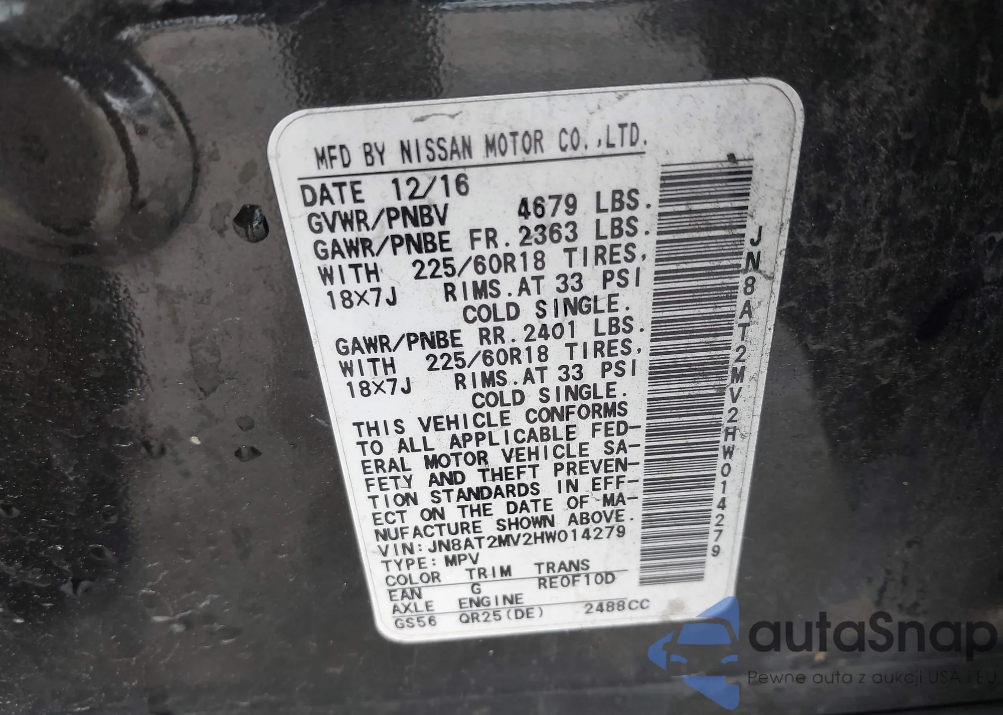 LOT: 42180984 VIN: JN8AT2MV2HW014279