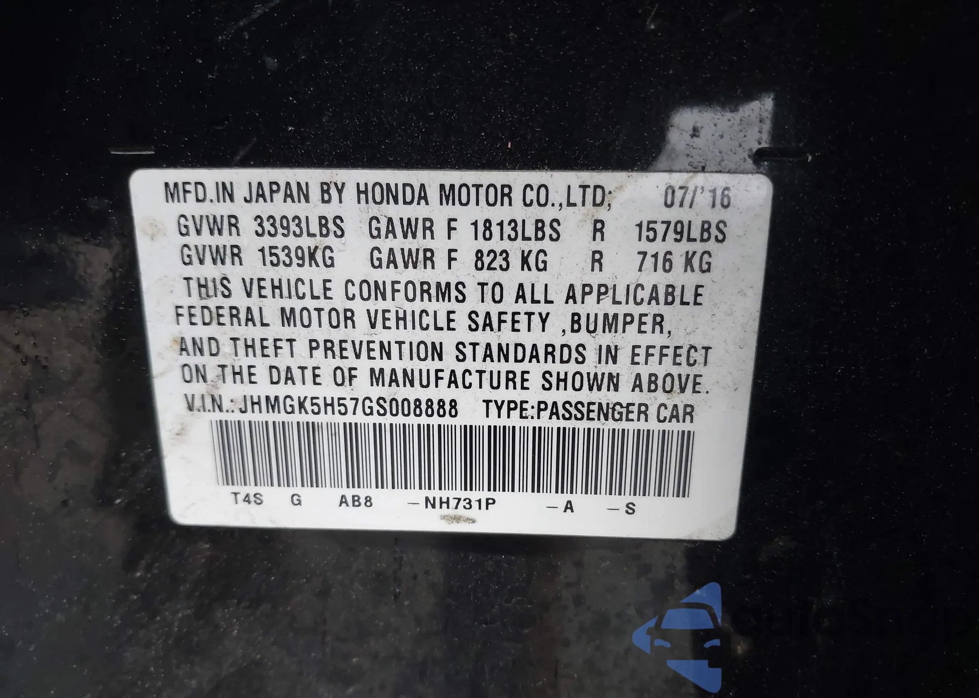• VIN 5FNRL6H71MB019599