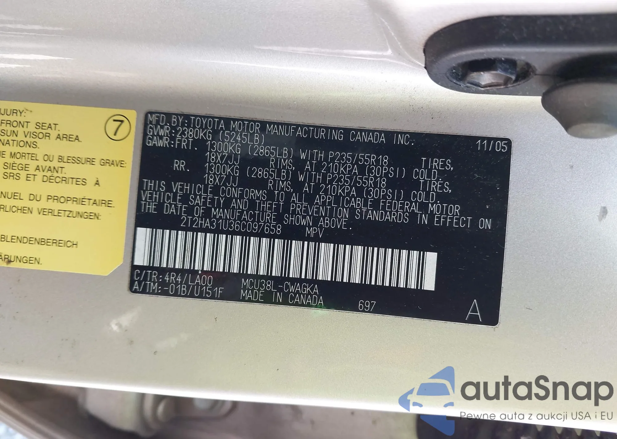 • VIN 2T2HA31U36C097658