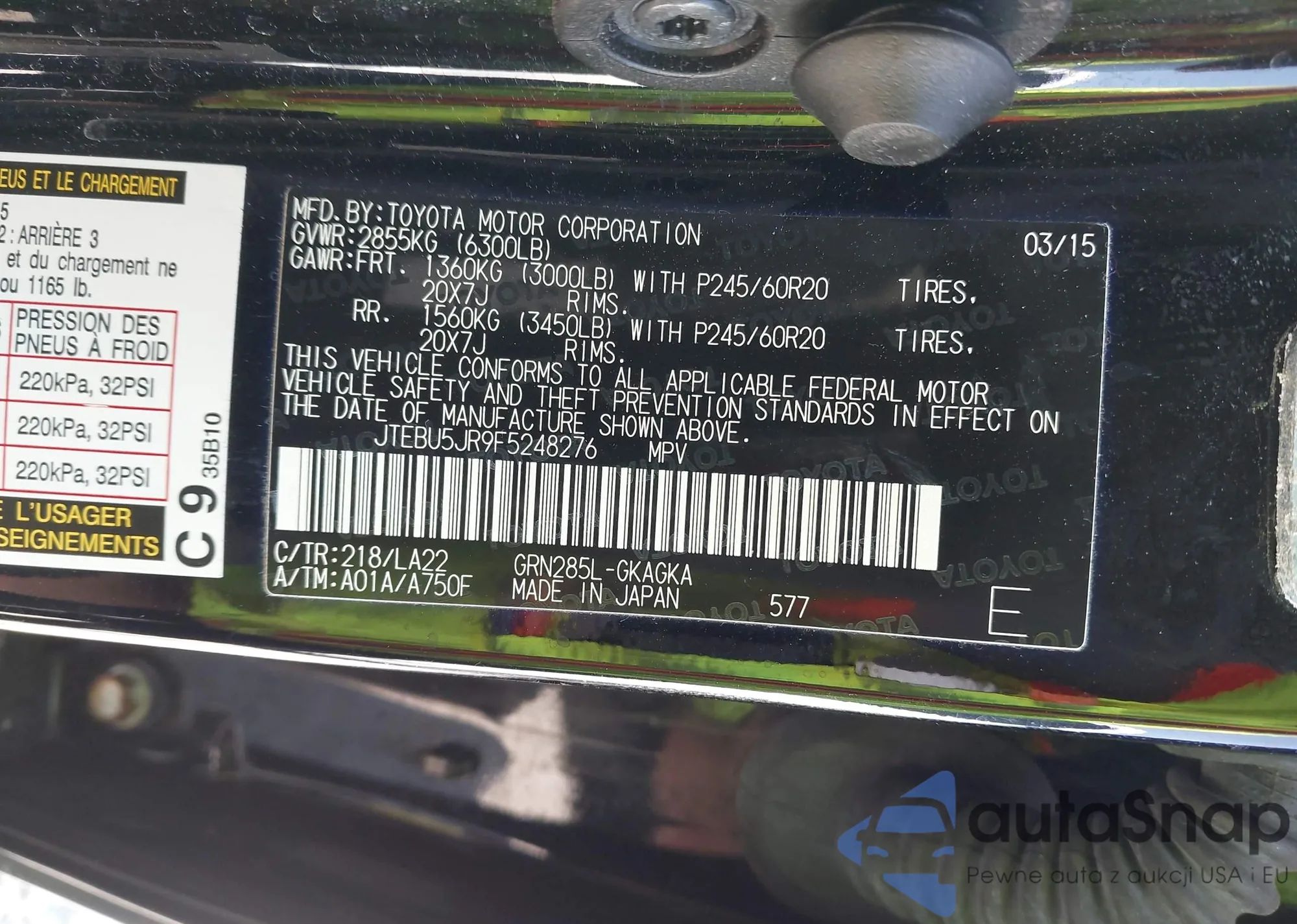 LOT: 42429579 VIN: JTEBU5JR9F5248276