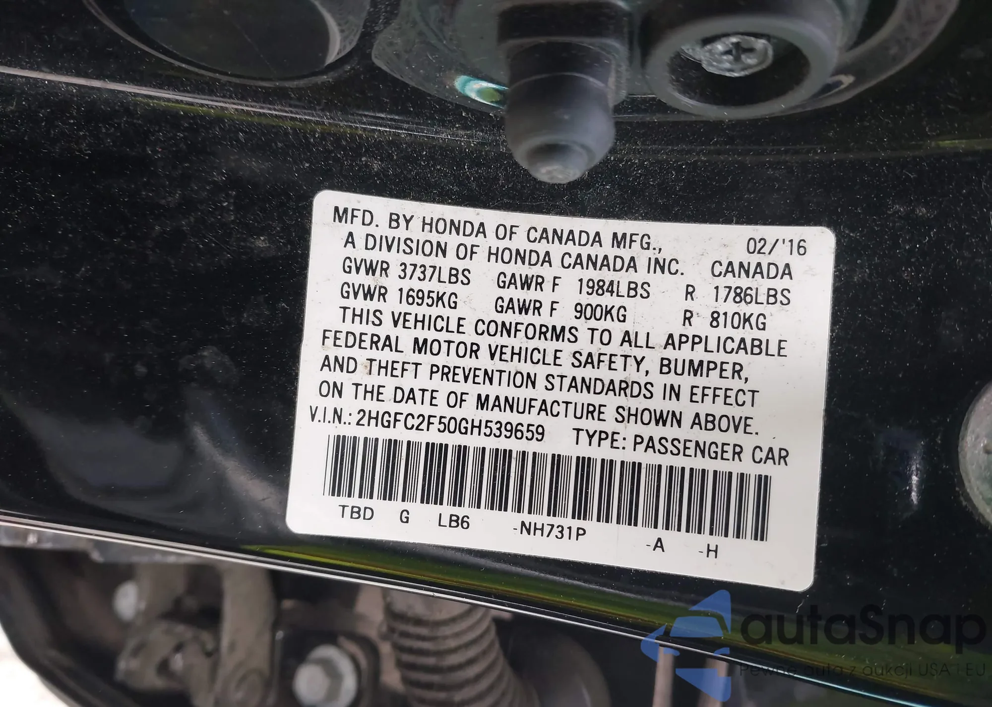 • VIN 2HGFC2F50GH539659