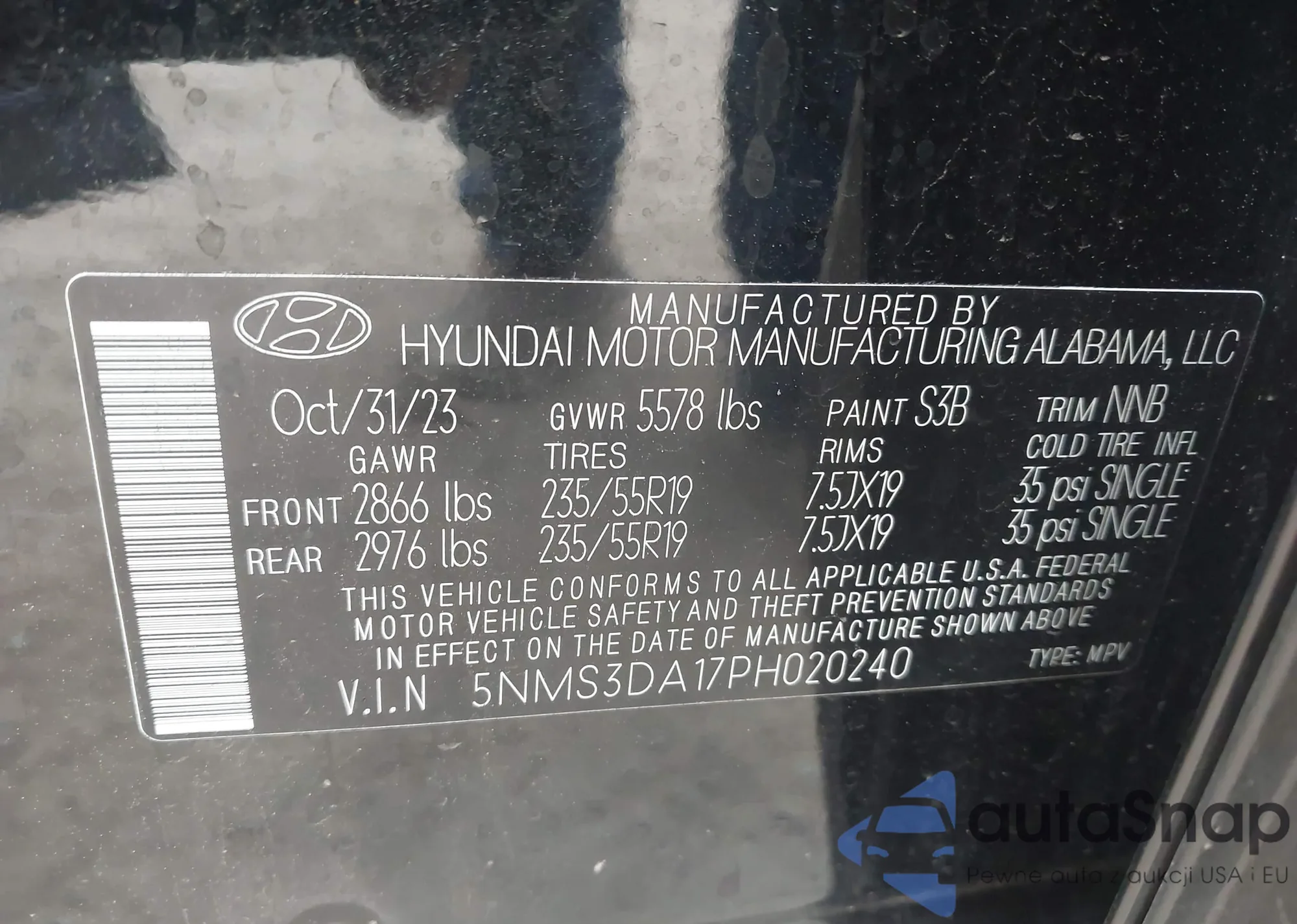 LOT: 42547586 VIN: 5NMS3DA17PH020240