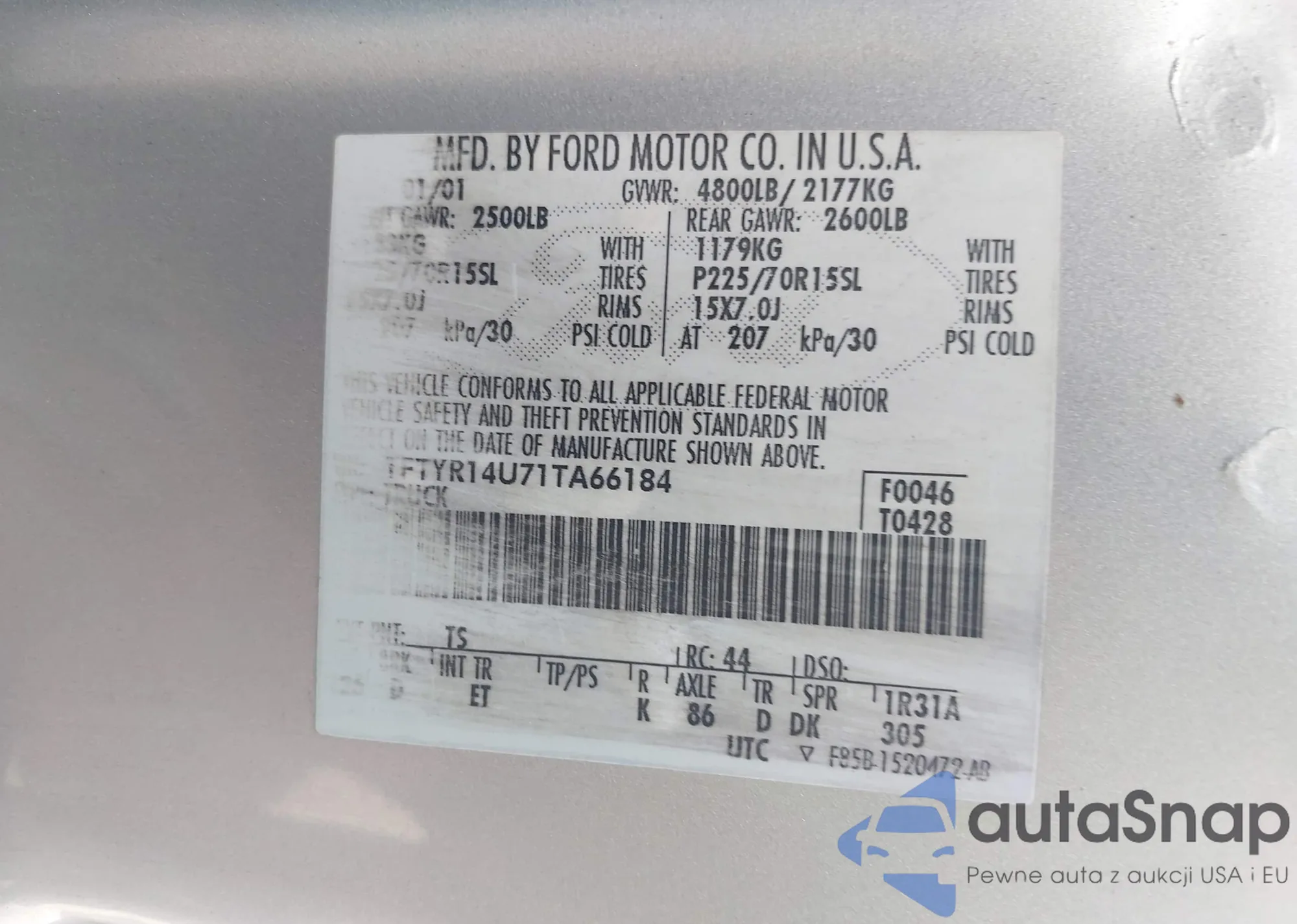 LOT: 42542228 VIN: 1FTYR14U71TA66184