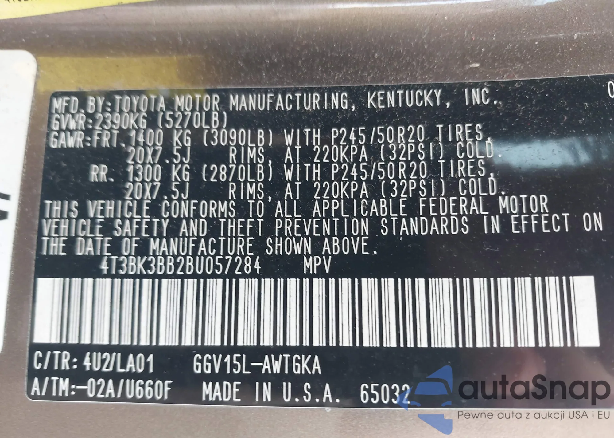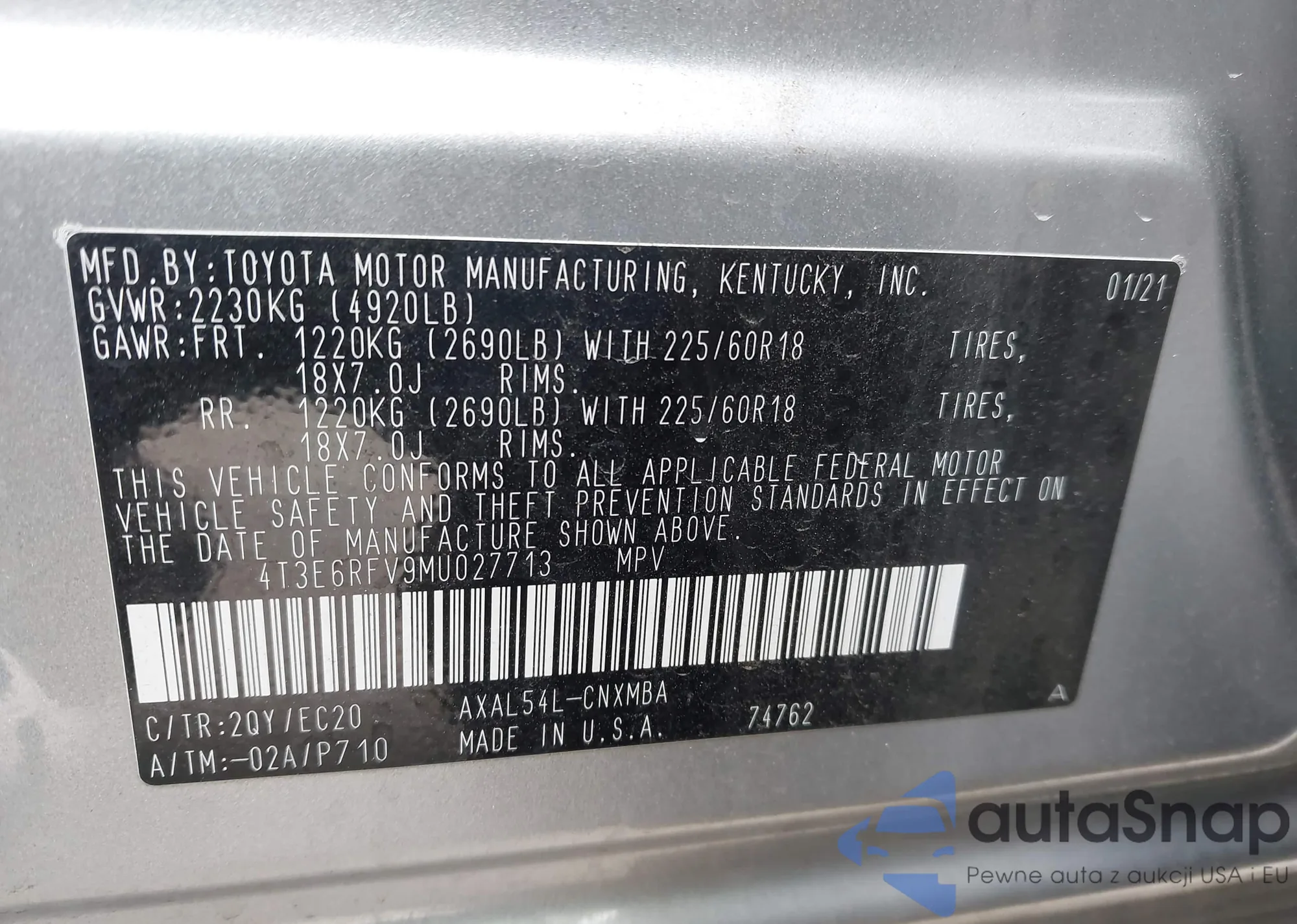 • VIN 4T3E6RFV9MU027713