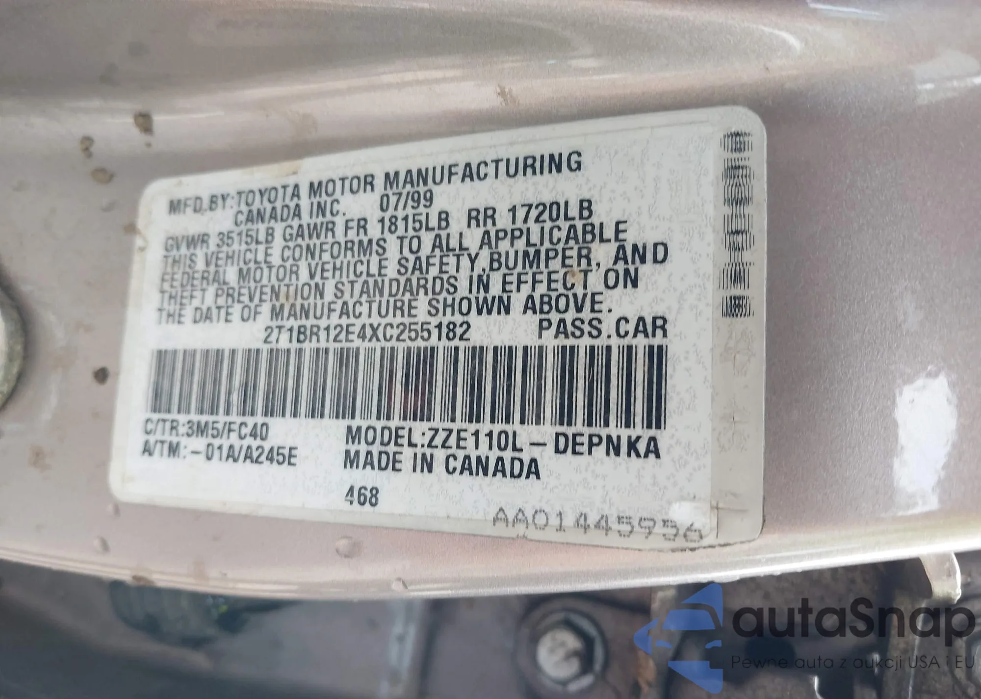 • VIN 2T1BR12E4XC255182