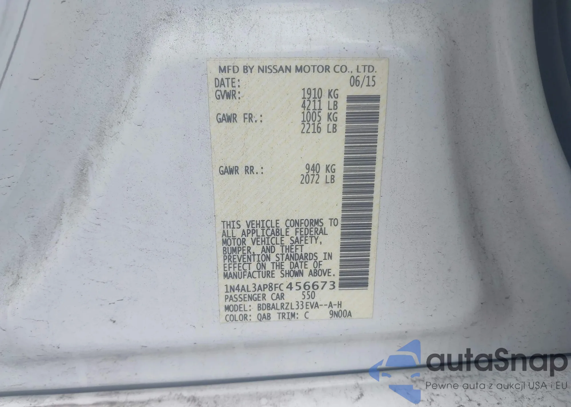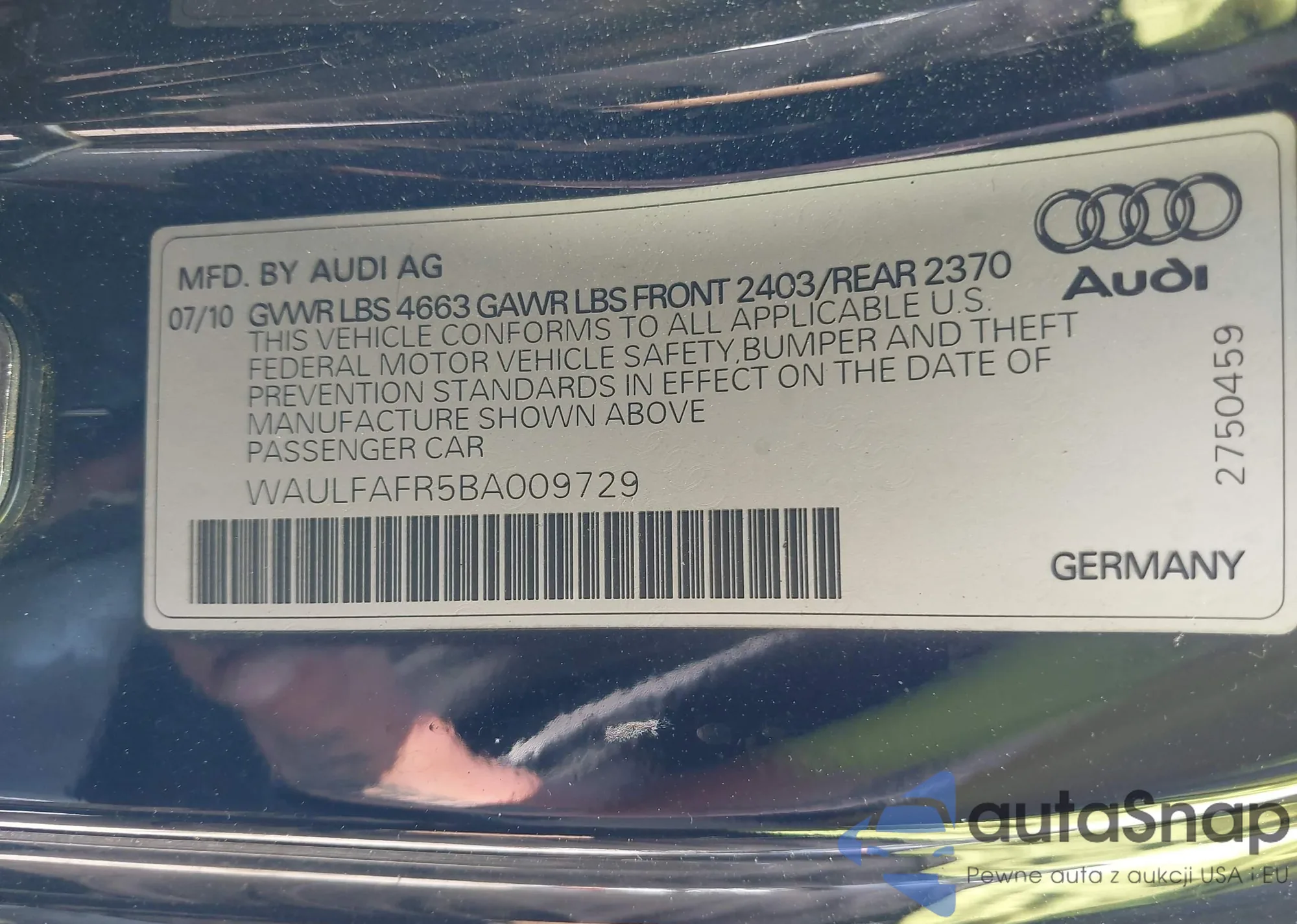 • VIN WAULFAFR5BA009729
