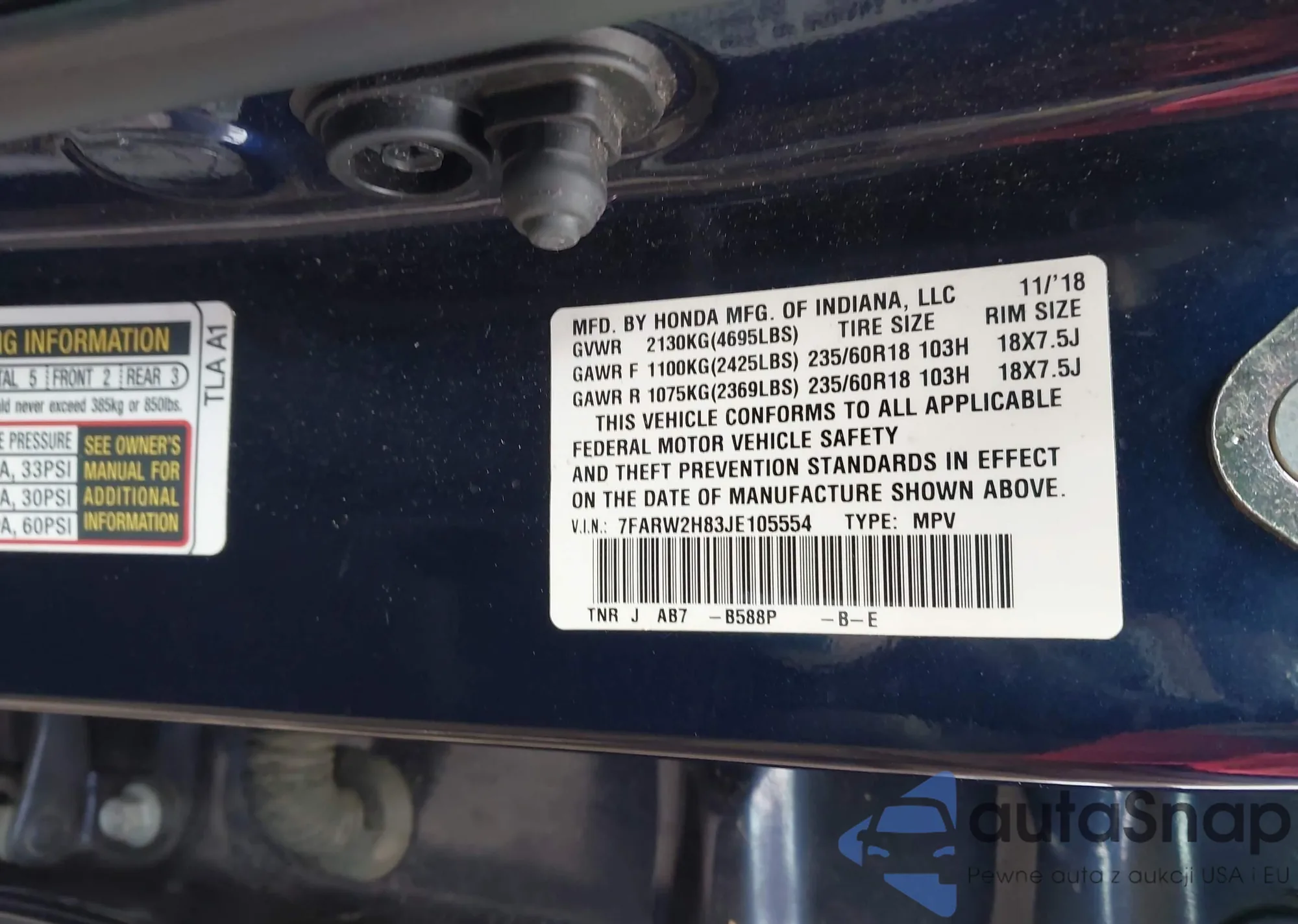 • VIN 7FARW2H83JE105554