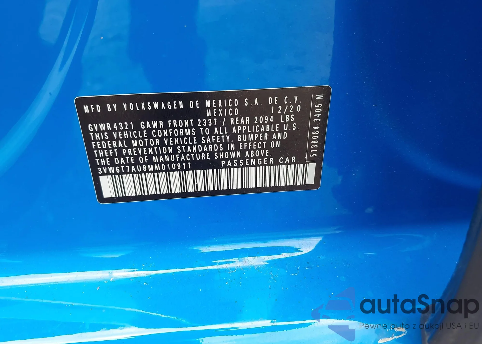 • VIN 3VW6T7AU8MM010917