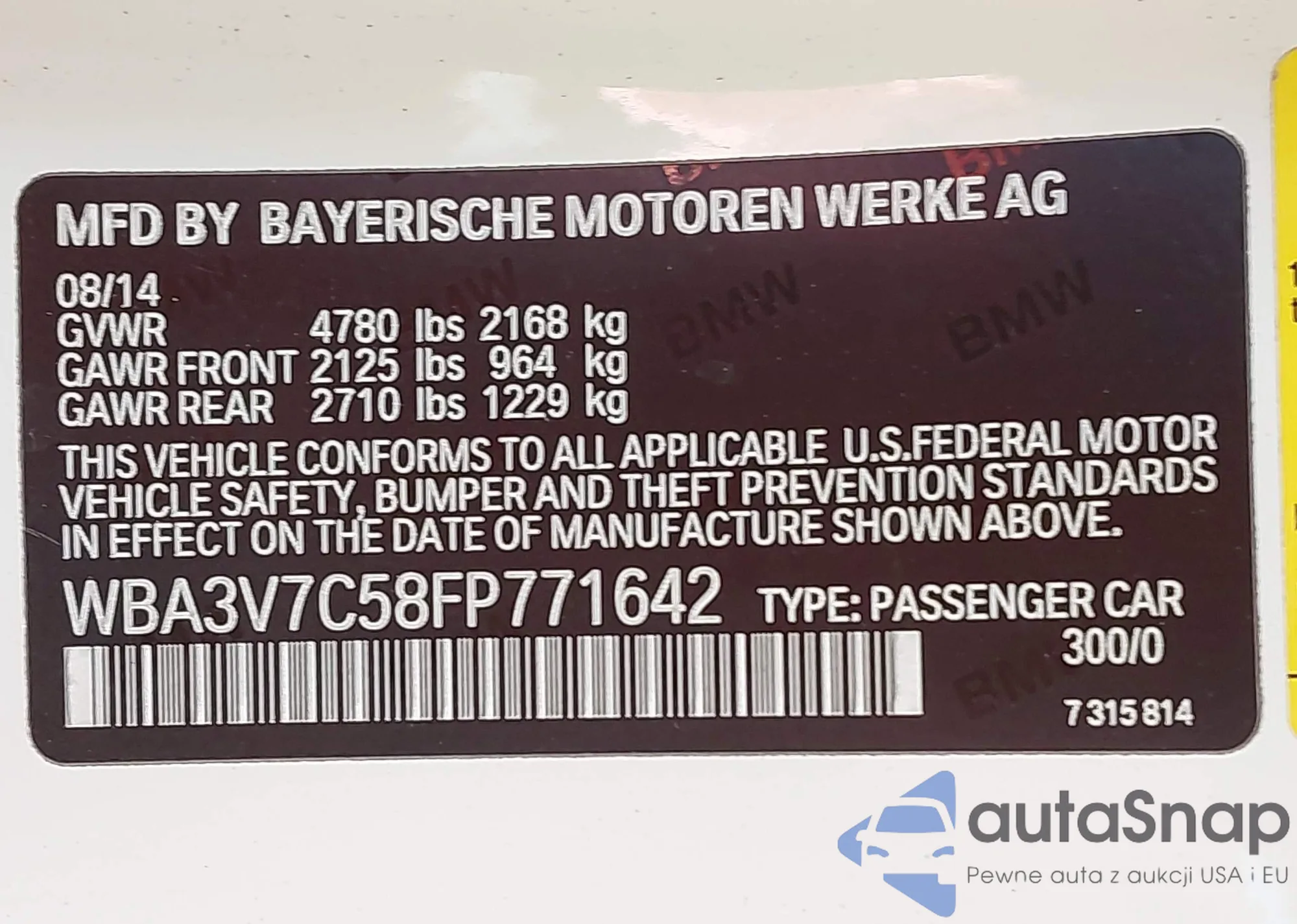 • VIN WBA3V7C58FP771642