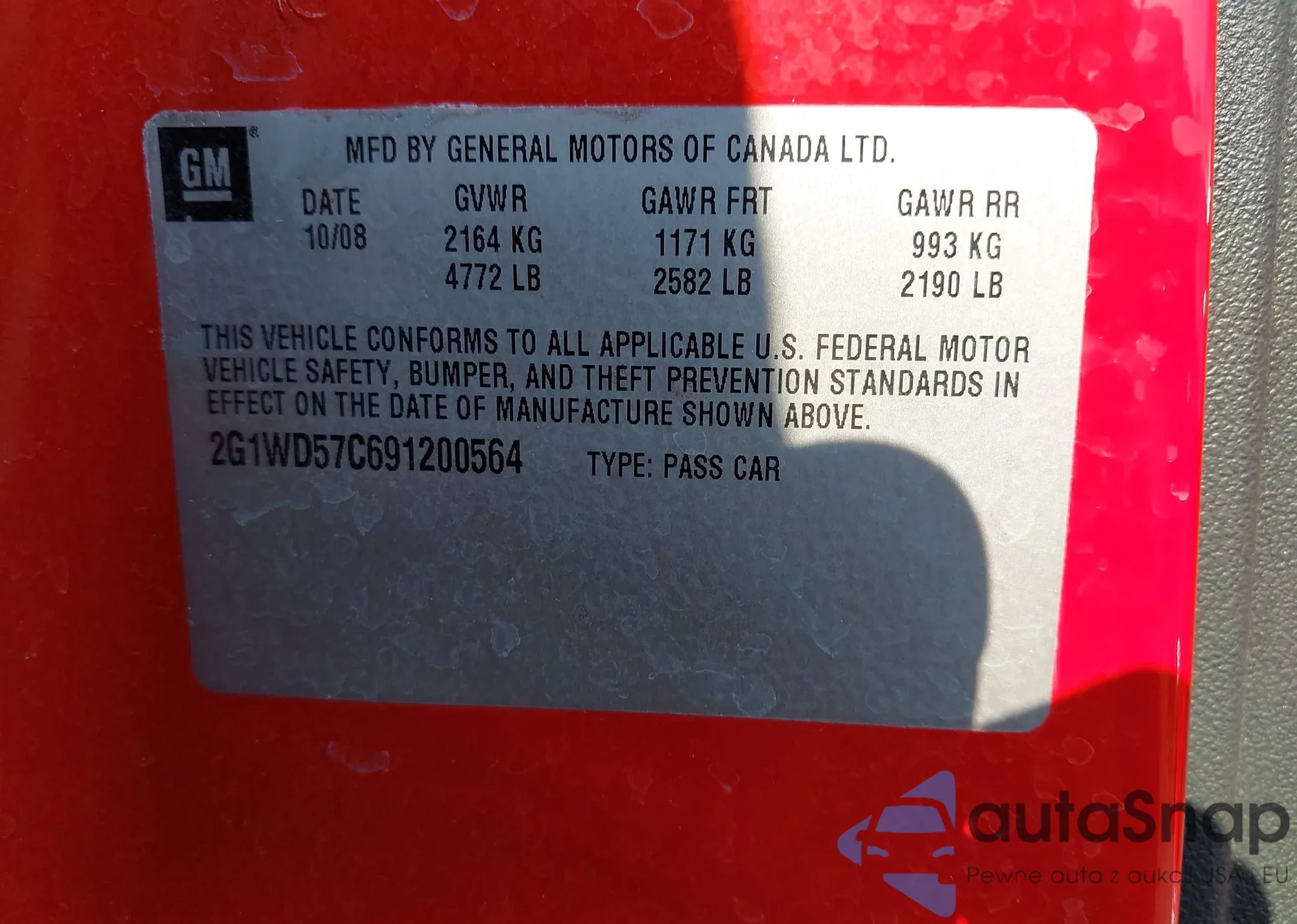 • VIN 2G1WD57C691200564