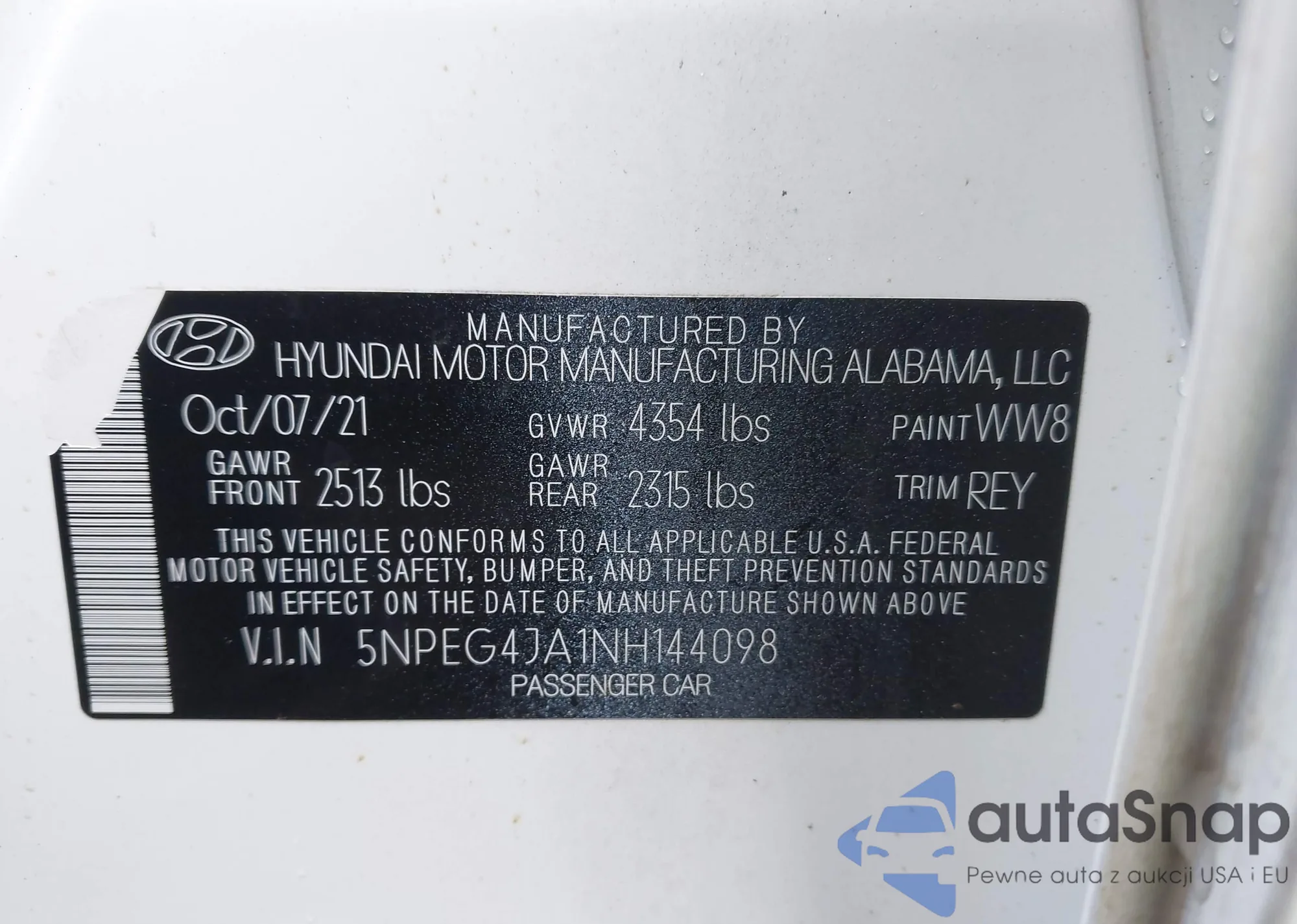 • VIN 5NPEG4JA1NH144098
