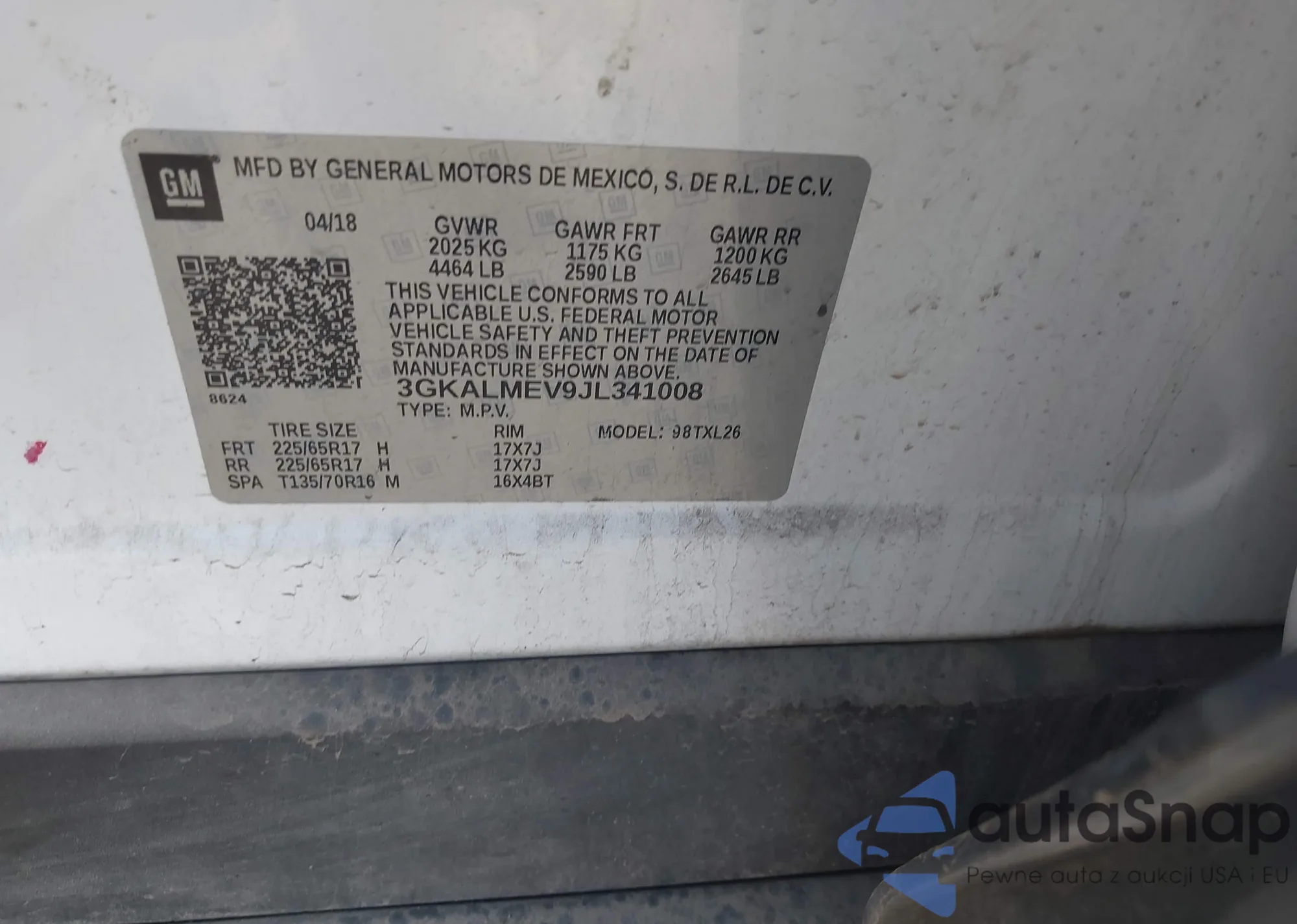 • VIN 3GKALMEV9JL341008