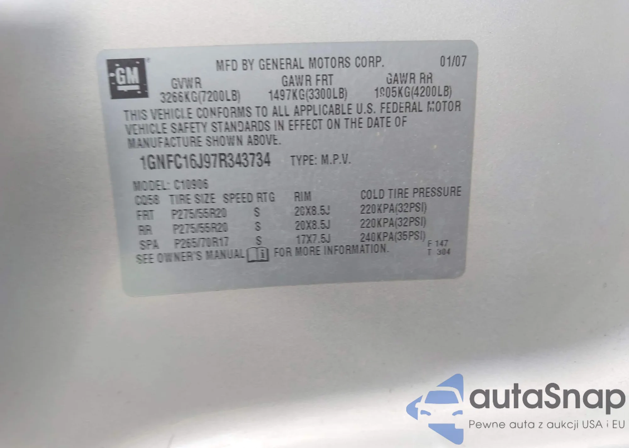 LOT: 42530813 VIN: 1GNFC16J97R343734
