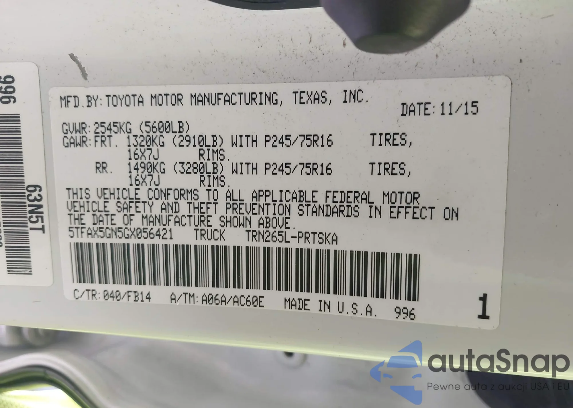 LOT: 42564083 VIN: 5TFAX5GN5GX056421