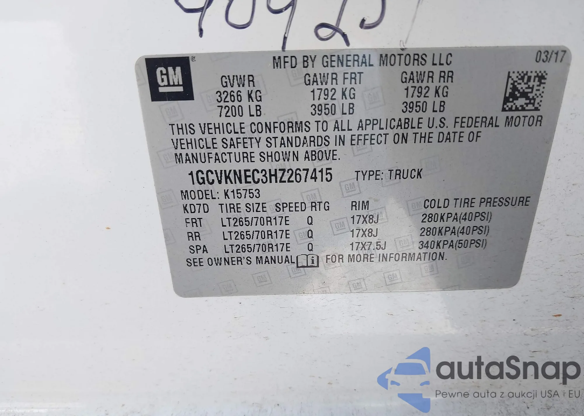 • VIN 1GCVKNEC3HZ267415