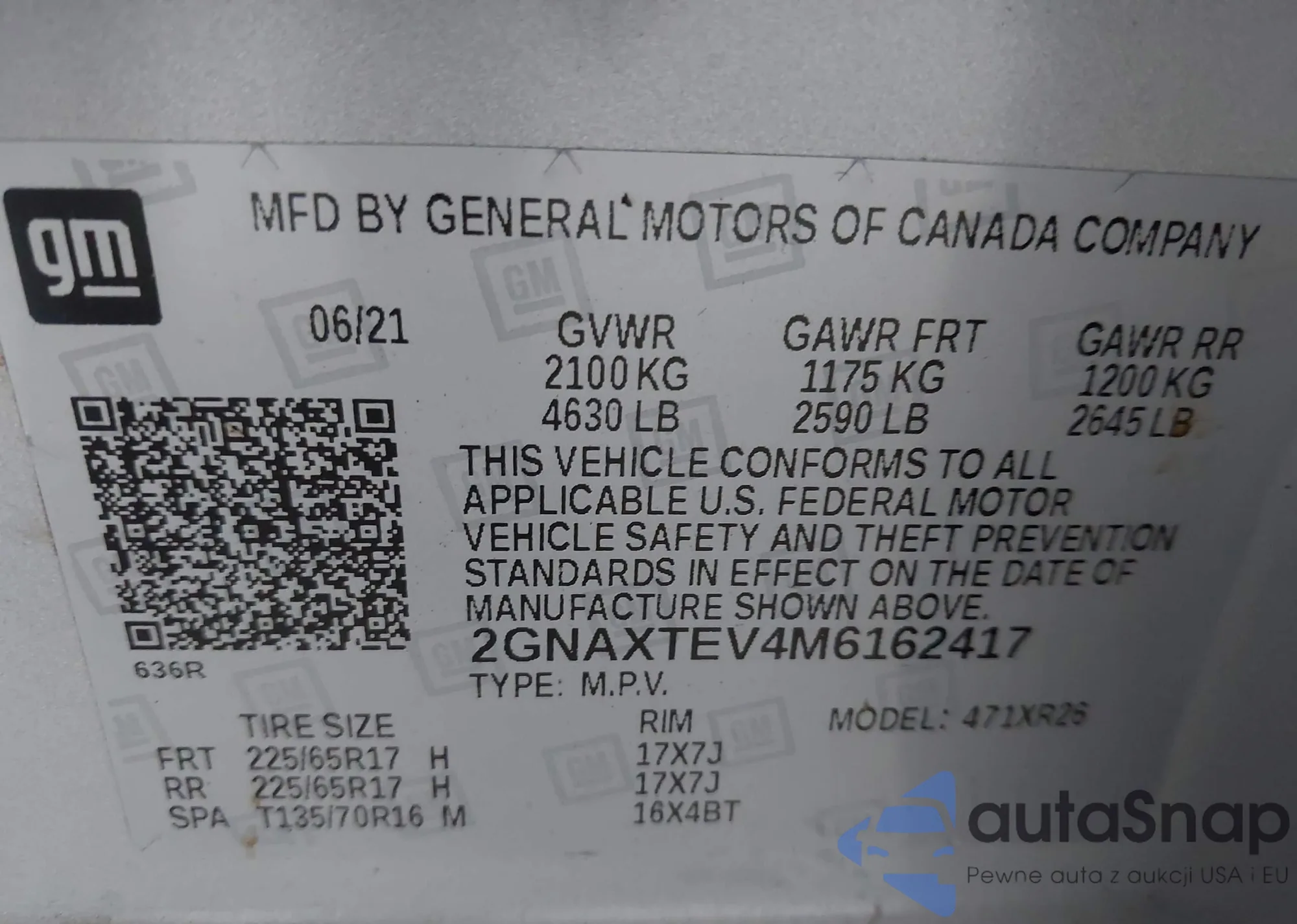 • VIN 2GNAXTEV4M6162417