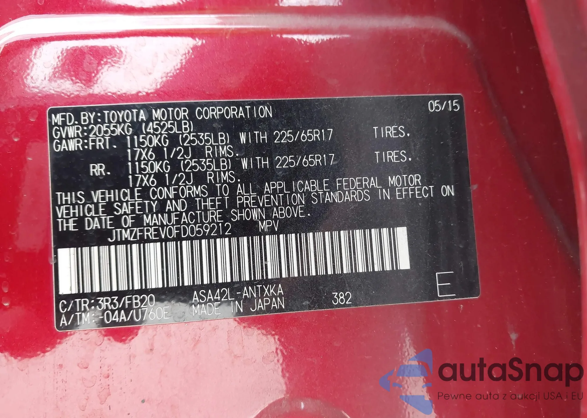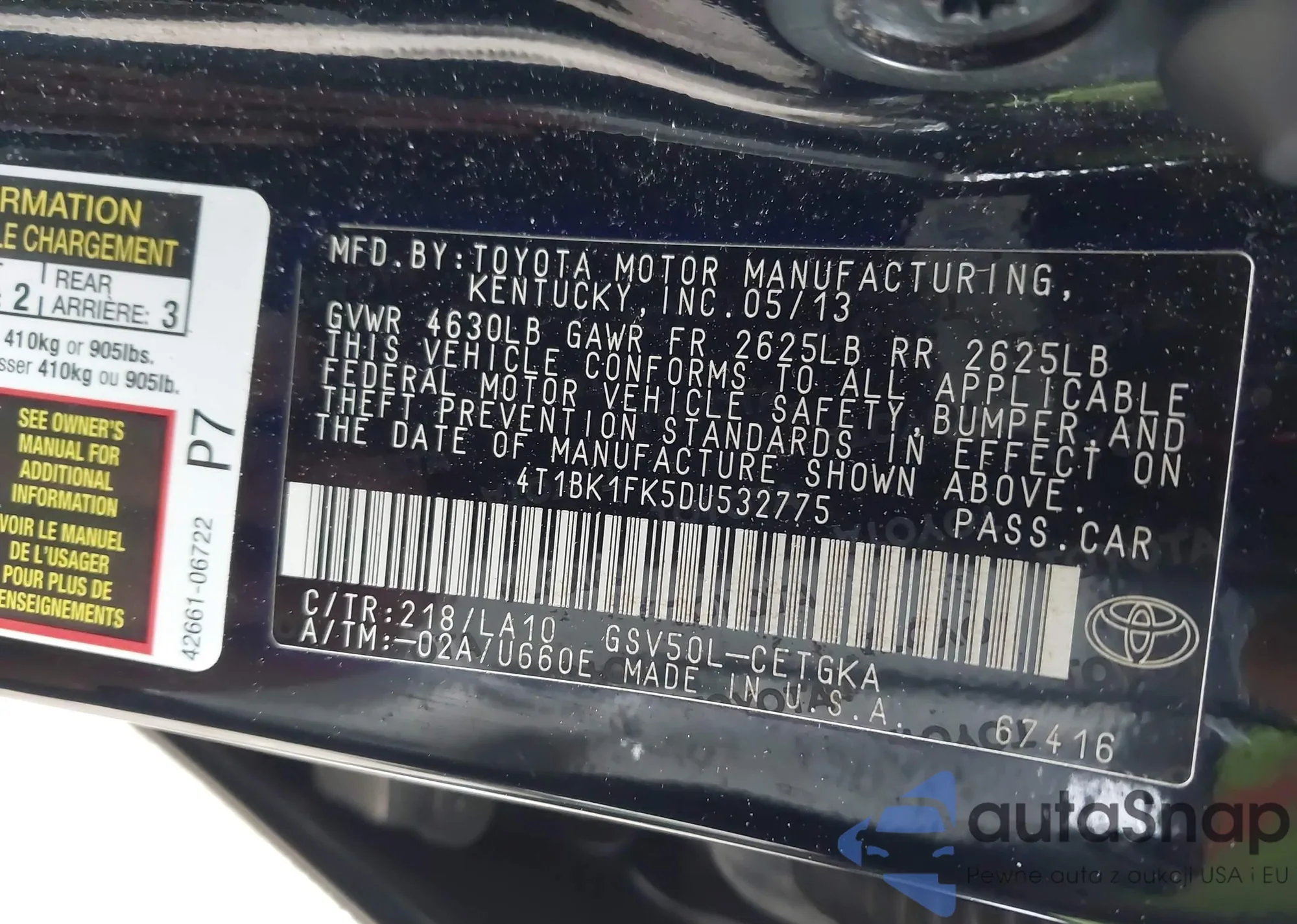 • VIN 4T1BK1FK5DU532775