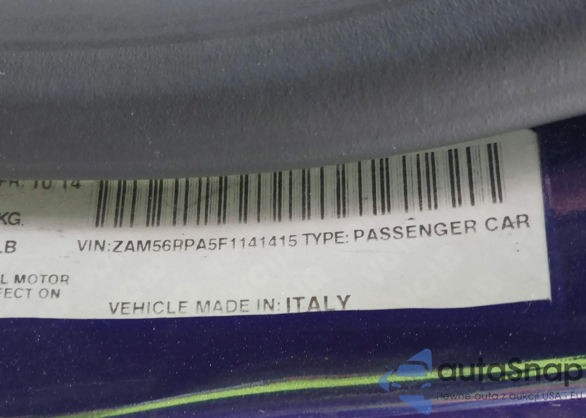• VIN ZAM56PPA5F1141415