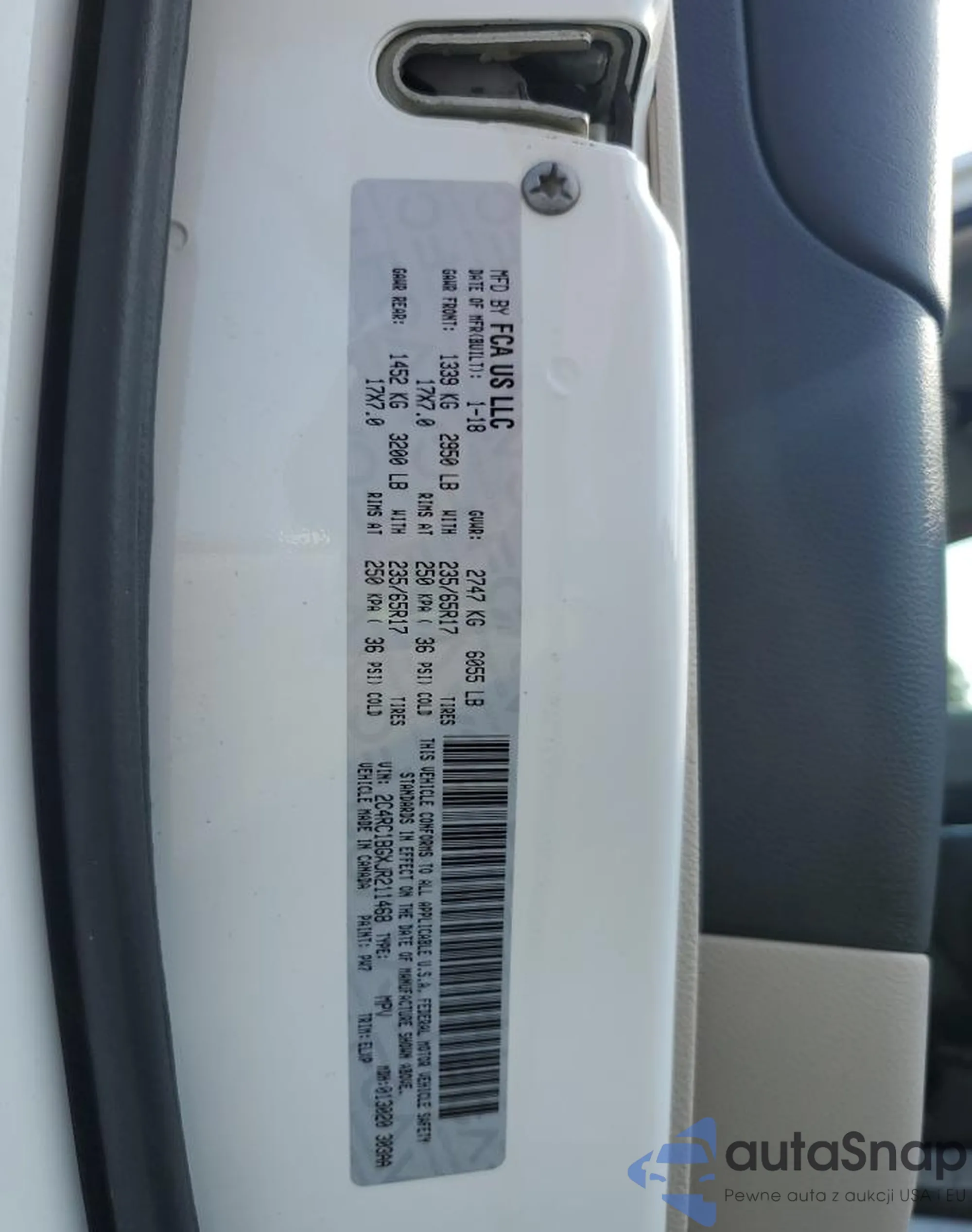 • VIN 2C4RC1BGXJR211468