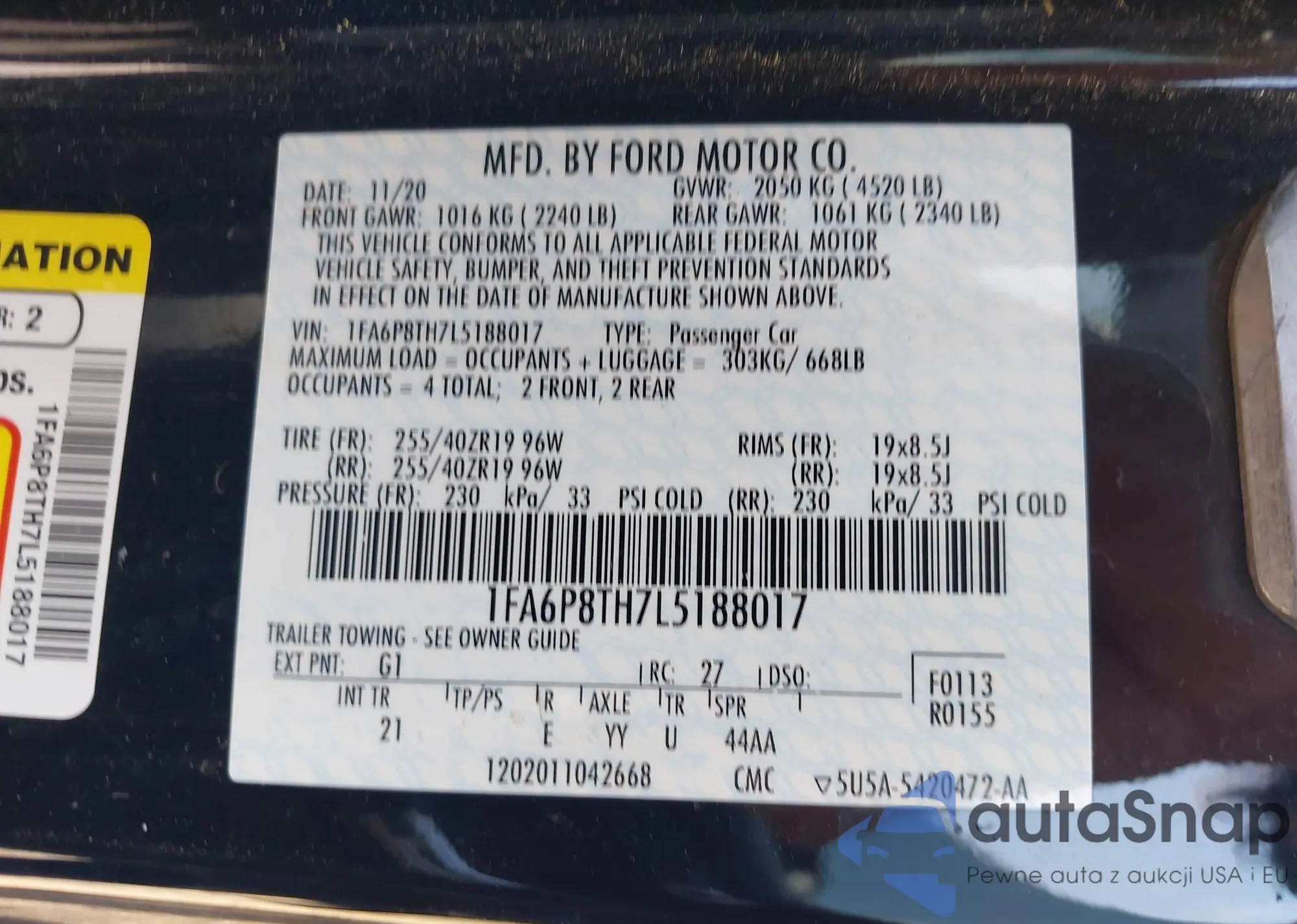 • VIN 1FA6P8TH7L5188017