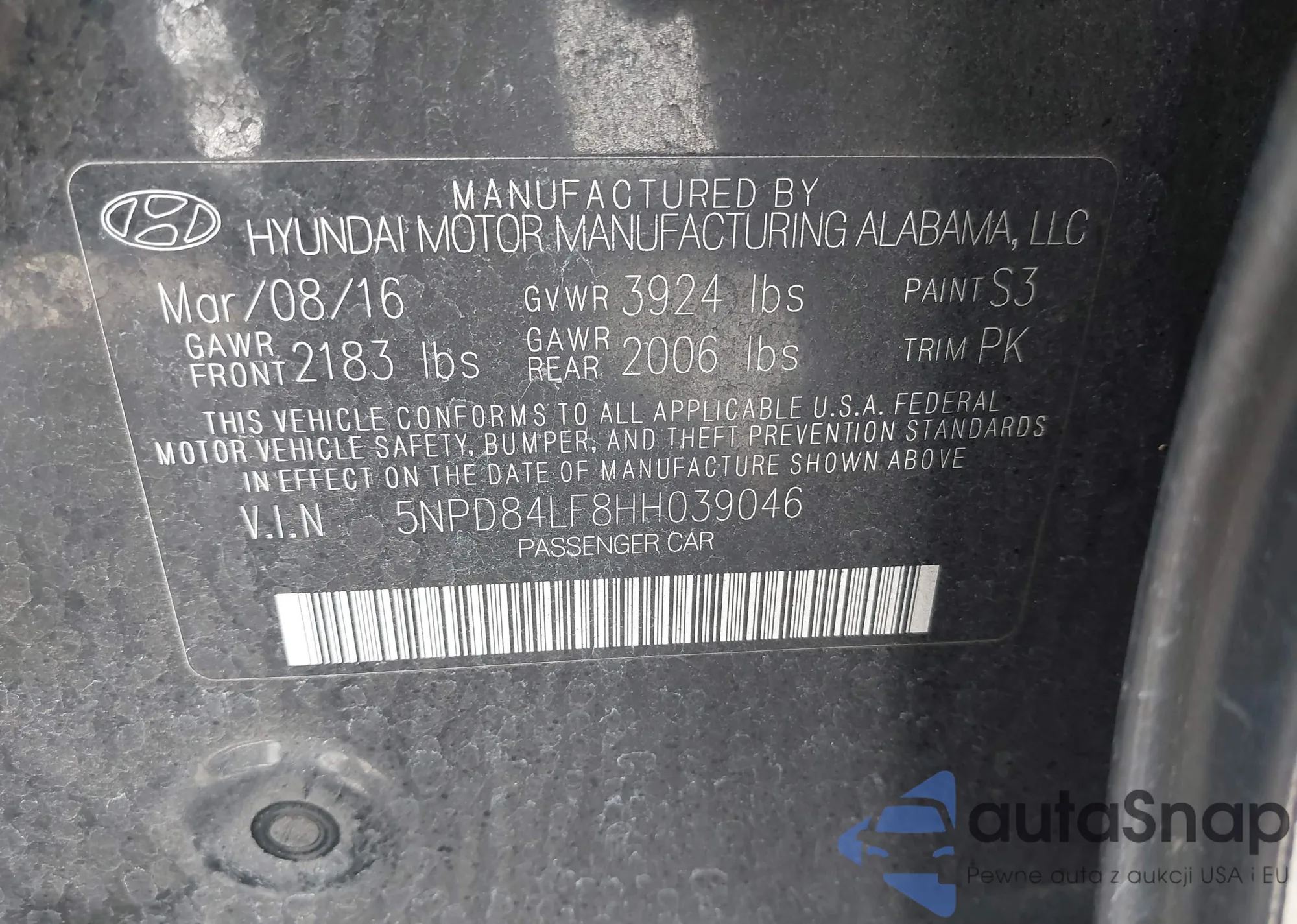 • VIN 5NPD84LF8HH039046