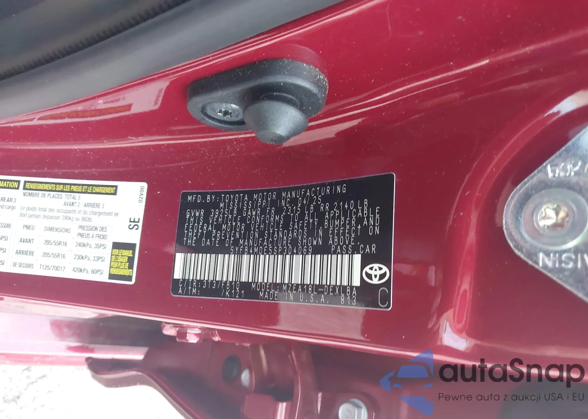 • VIN 5YFB4MDE5SP304069