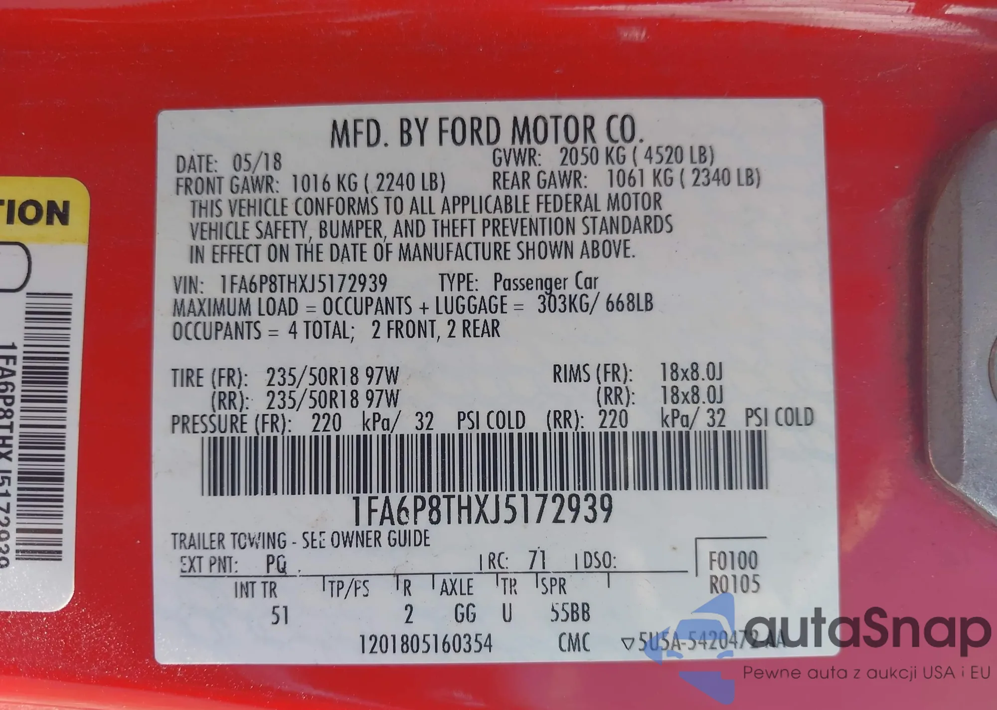LOT: 42608058 VIN: 3VW547AUXJM292515