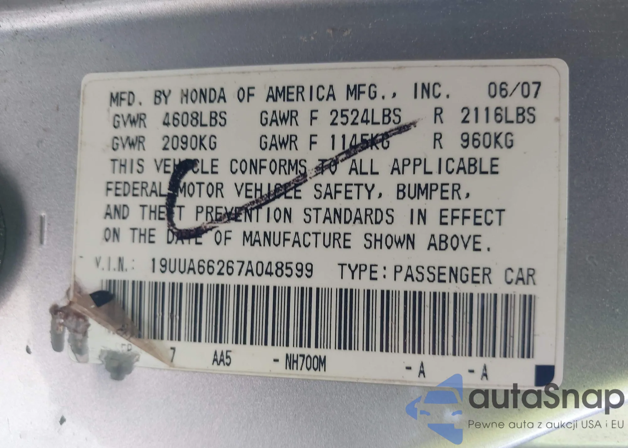 LOT: 42680603 VIN: 2HKYF18564H611781