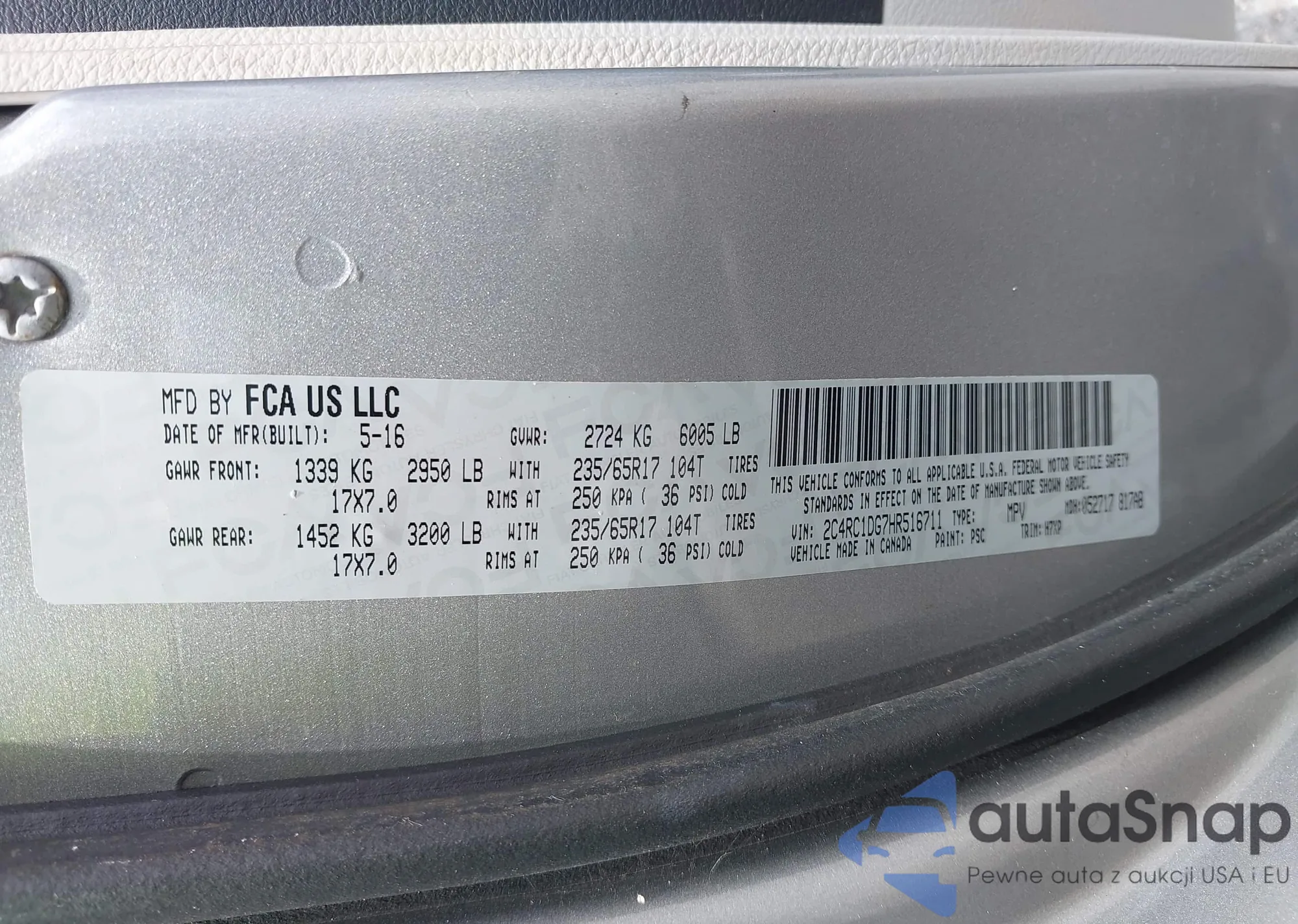 • VIN 2C4RC1DG7HR516711