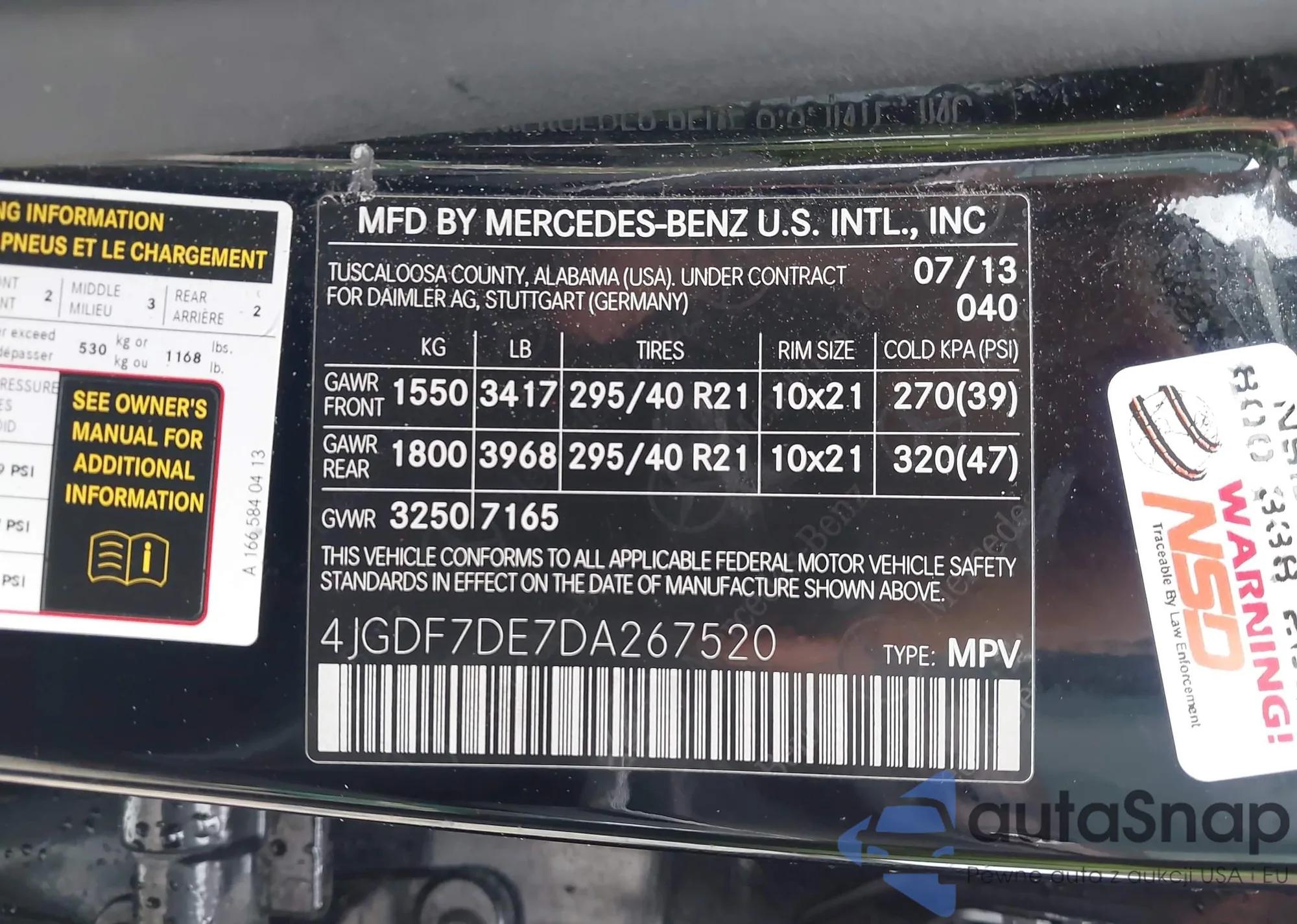 • VIN 4JGDF7DE7DA267520