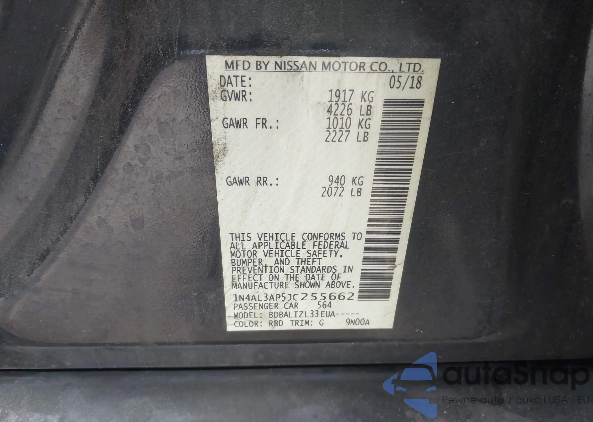 LOT: 42229232 VIN: 1N4AL3AP5JC255662