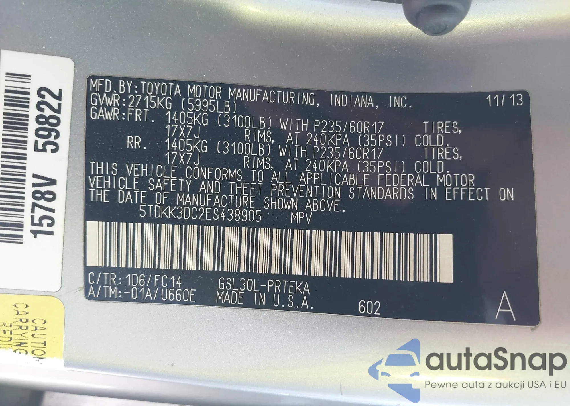 • VIN 5TDKK3DC2ES438905