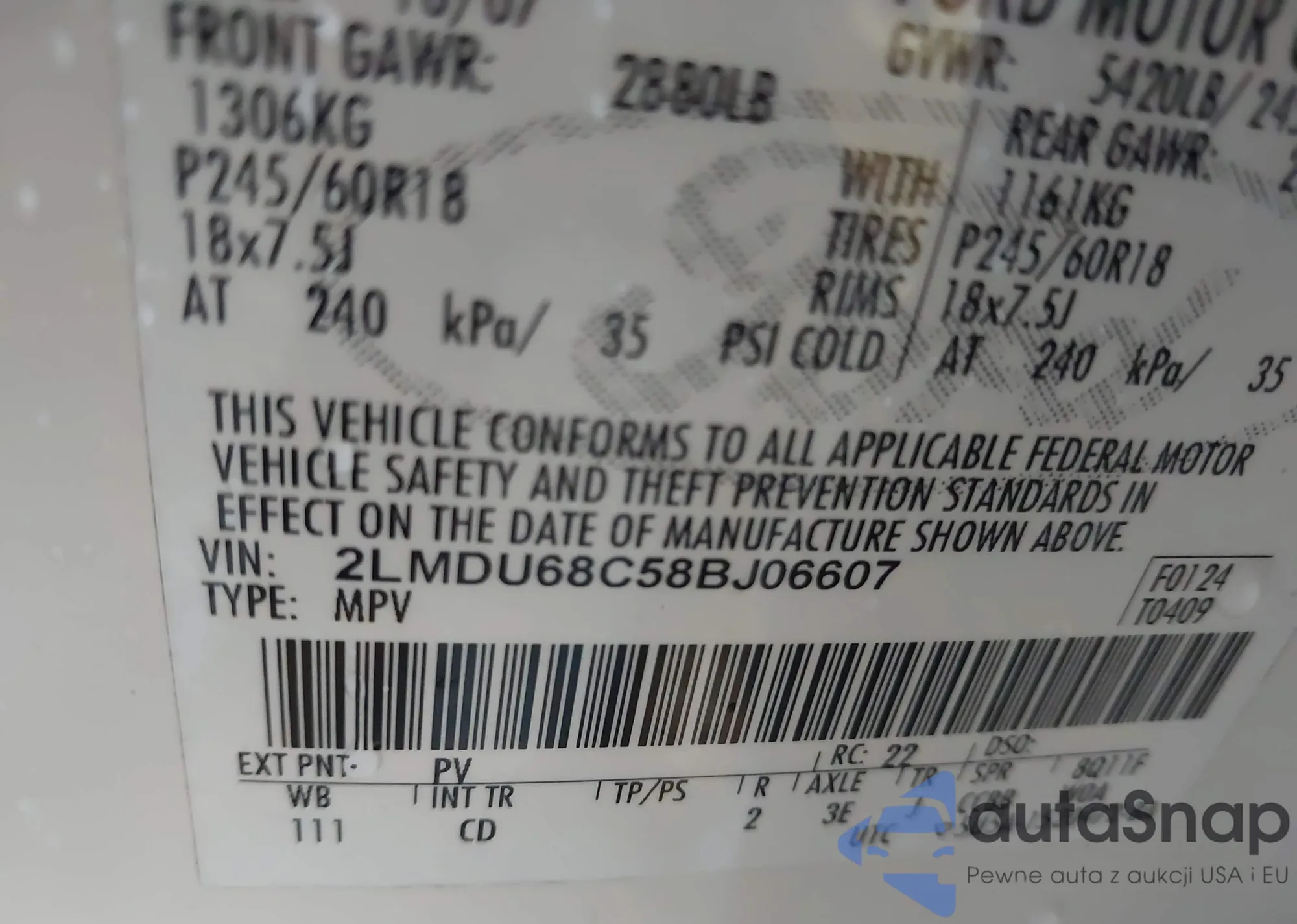 • VIN 2LMDU68C58BJ06607